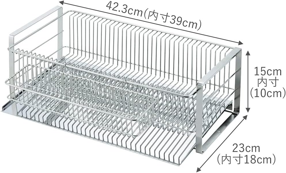 Sleek colander basket Even with its slim shape, you can drain plenty of dishes. The secret is that the wire is spaced at 0.3 inch (8 mm) intervals so you can stand it up with the minimum space of draining dishes in the same space. It can also be used to hold small items such as cups in a stable way. Uses a tray that allows water to flow naturally. The left and right flat plate frames are easy to hold and hold firmly when moving. The tray is built to hold together Comes with a chopstick rest that can drain chopsticks and spoons.