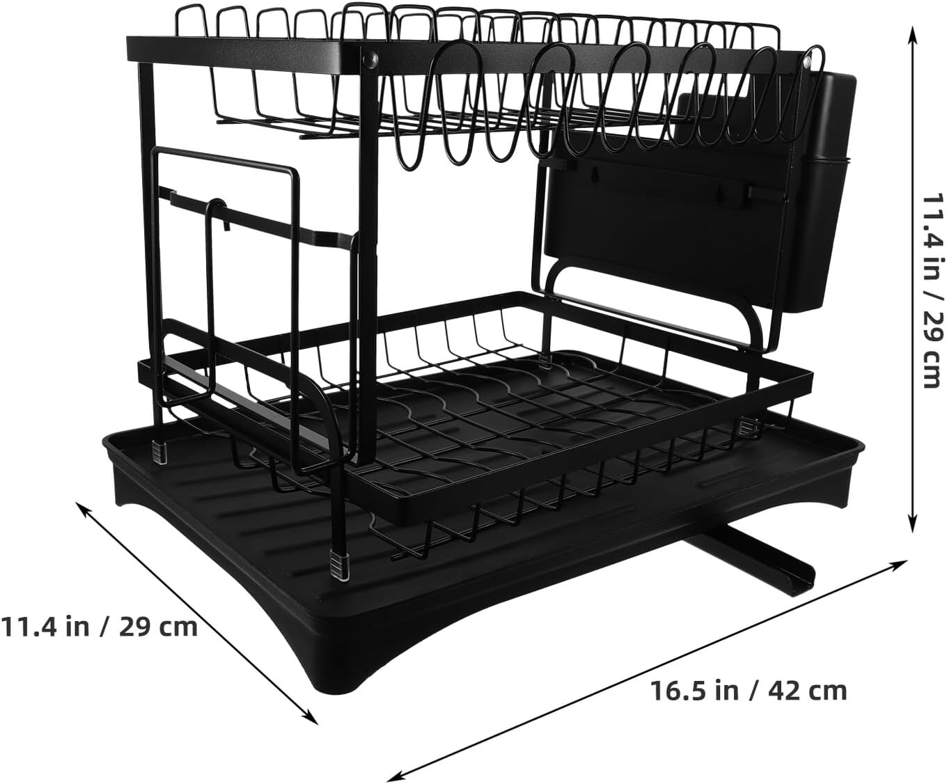 Package List 1 x storage rack 1 x cutting board holder 1 x chopsticks pot Characteristics -Color:Black -Size:42.00X29.00X29.00cm/16.51X11.40X11.40in -Material:Carbon steel, plastic -Product Info:Drain storage rack - Safe and convenient to use, not easy to break or deform, reusable and can be applied for longtime tableware rack. - Suitable storage dish diameter 13-30cm/5.12-11.81in, dish height 1-3.5cm/3.93-1.38in, bowl dish diameter 7-12.8cm/2.76-5.04in, bowl height 3.5-5.5cm/1.38-2.17in cutlery drying rack. - The space-saving design does not take up any space, and both large and small plates can be stored space saving drying rack. - Smooth and mellow surface design, not easy to hurt hands. It will meet your needs modern dish drying rack. - The reasonable design makes it easy to clean and at the same time prevents water from leaking plate racks. - The divider slot design separates the items so that the needed plates and bowls can be easily accessed utensil drying holder.Goods Informationkitchen dish rack Dish rack is ventilated and wonderful, keep your kitchen clean and dry.chopsticks holder You can put storage rack at the home, restaurant, useful and convenient for you.space saving drying rack This kitchen draining dish rack has excellent performance, lightweight and useful