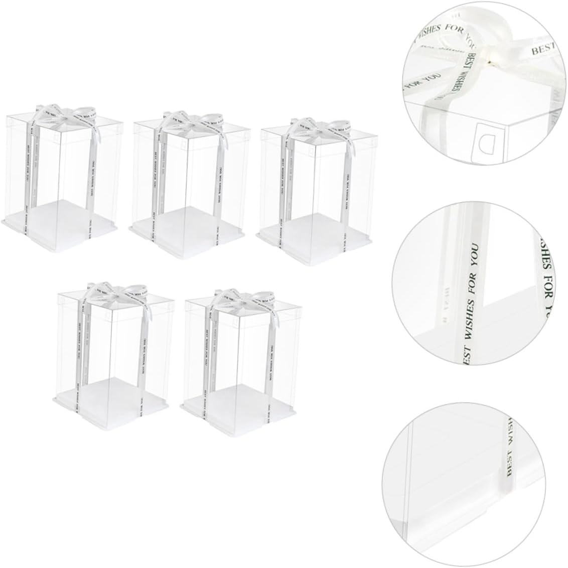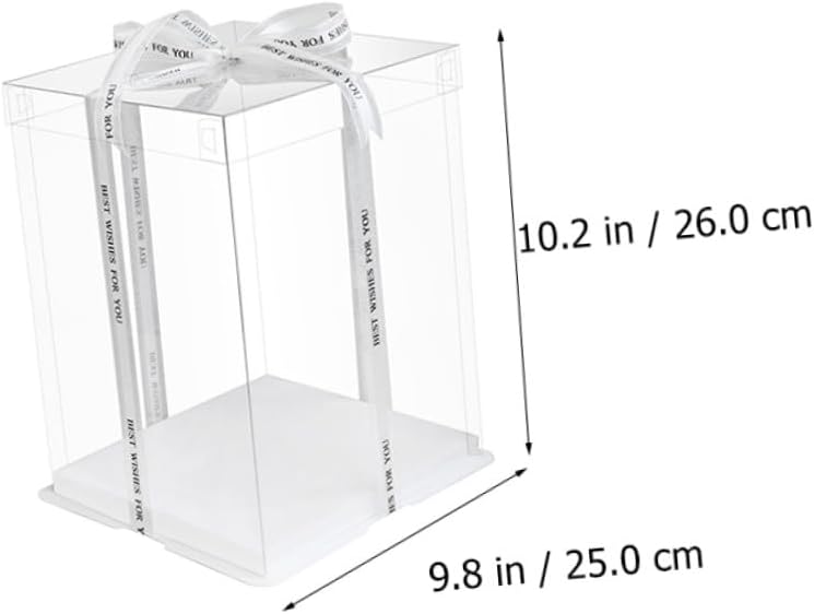 Package List 5 x cake packaging boxes Characteristics - Size: 26.00X26.00X25.00cm/10.22X10.22X9.82inch. - Color: White (Random color for ribbon). -Product Info:Birthday Cake Box - Applicable: for 8 inch cake Cake Carrier. - Material: Food grade white card, PET. - Made of material, which is very and safe to use. - No bad odor, easy to clean, not easy to break, for car travel, outdoor picnics, etc Cake Packing Case. - Ribbon design to keep the food sealed and prevent the cover coming off Cake Holder. - Very suitable for wrapping Christmas, New Year, birthday, holiday cakes Square Storage Container. - With ribbon for you to carry your cake or other food everywhere Cake Wrapping Case.Goods InformationBaking Cake Container It can be used for refrigerator or kitchen cupboard.Food Packaging Boxes This item is a cake carrier, made of and sturdy food grade white card, PET material.Square Storage Container Transparent surface helps you see the inner clearly.Cake Packing Case The ribbon design makes this storage organizer more portable and practical