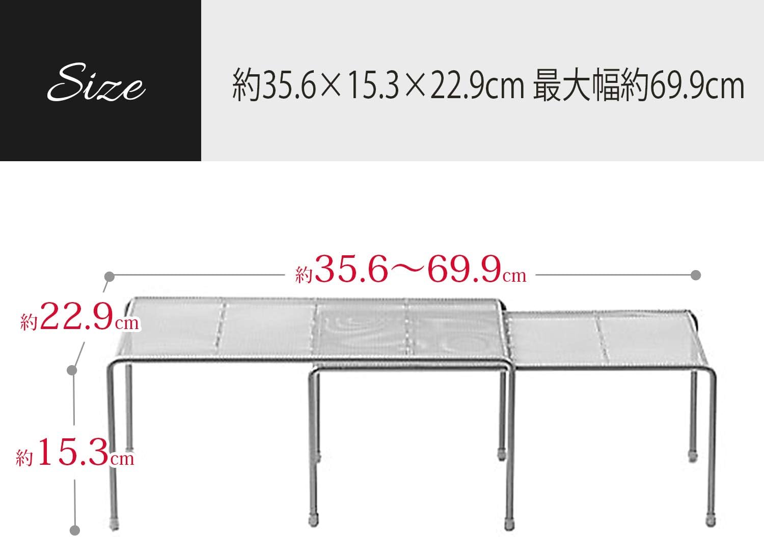 Convenient sliding type. 2-tier mesh rack for multi-purpose use under the sink, cupboard, etc. ● A steel rack with a modern and simple design. The width can be adjusted according to the location you use it (maximum width of about 29.9 inches (76 cm)). Recommended for storing dishes and groceries in the kitchen. It can also be used in a variety of places such as bathrooms, desks, computers, bedrooms and more. Recommended for use at home, as well as in the office or for commercial use.