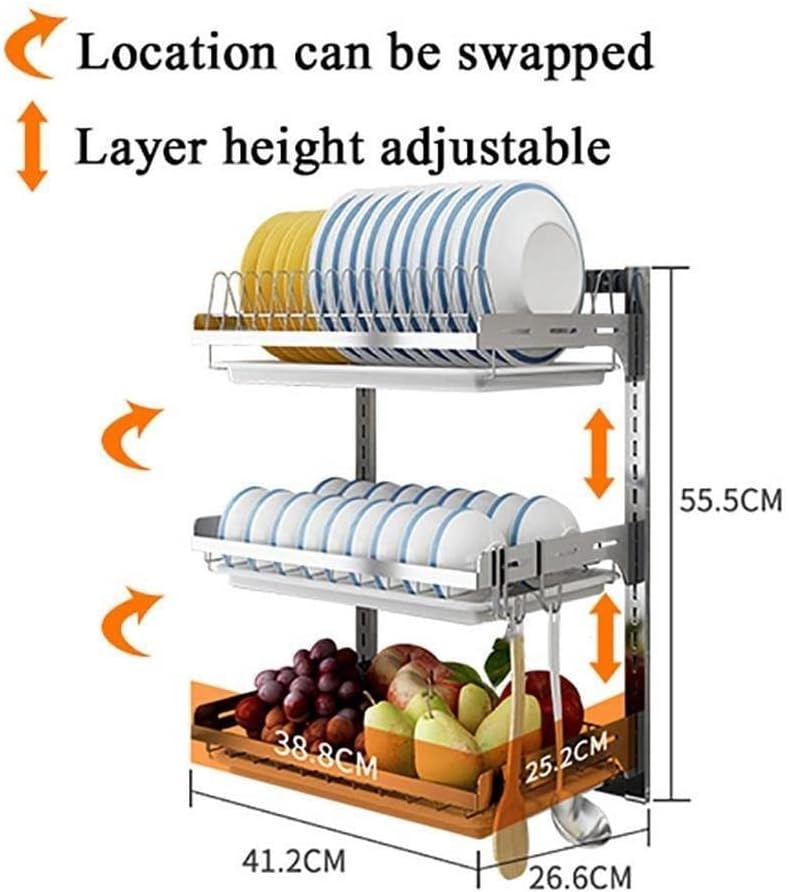 Name: Draining rack Color: silver Size: 55.5*26.6*41.2cm There are no other items in the product photos except the drain rack. If you have any questions, please feel free to contact us to ensure that you get back to you as soon as possible and provide you with a satisfactory solution.