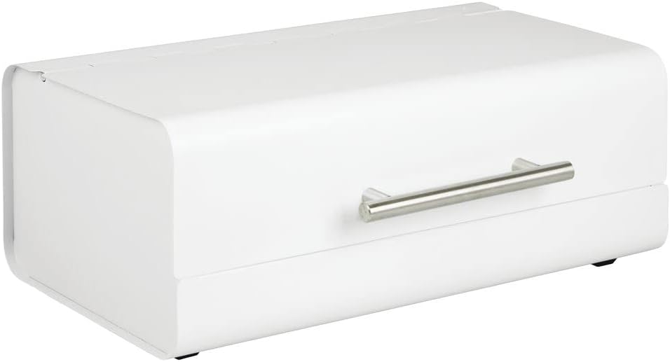 mDesign Metal Bread Box Bin with Hinged Lid - for Kitchen Countertop, Island and Pantry - Large Capacity Storage, Vintage-Inspired Design - Multi-Purpose Storage Container for Home - Matte White