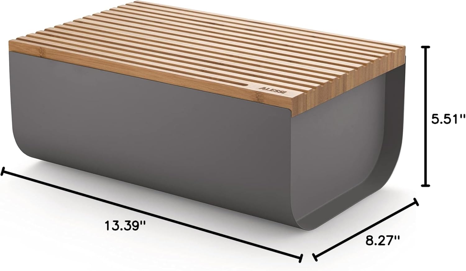 | Item Type Name | Bread box in steel coloured with epoxy resin, Dark Grey with cutting board in bamboo wood. |