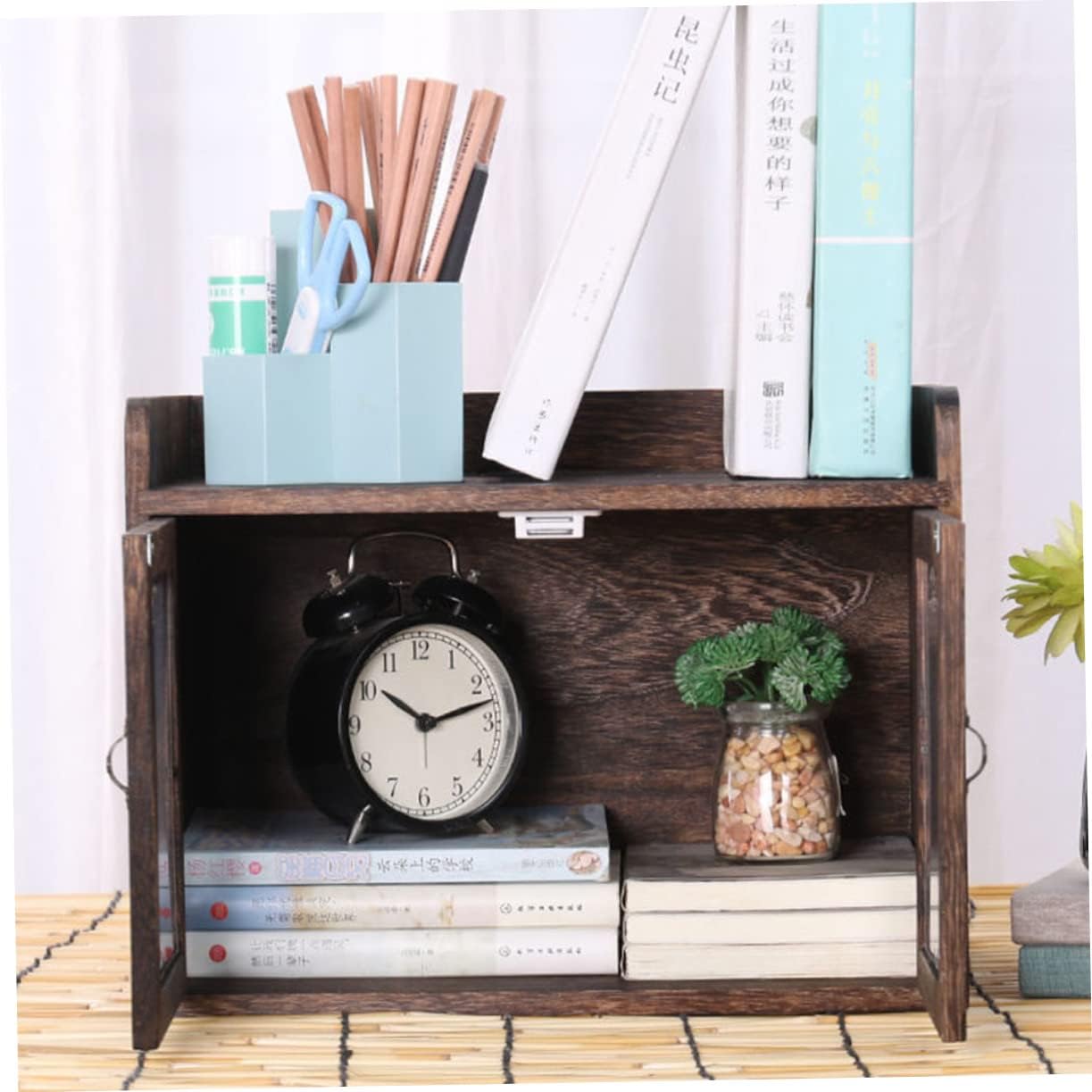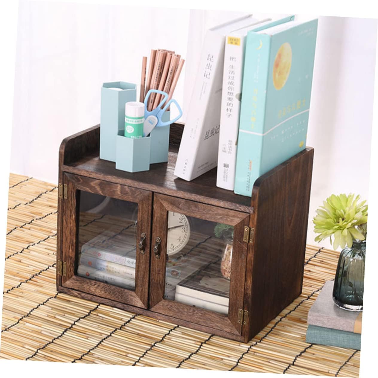 Package List 1 x Storage Box Features -Color: As Shown -Size: 35.00X26.00X22.00cm/13.76X10.22X8.65in Home Bread Bin -Material: Wood Visible Box -Made of materials, which is not easy to deform or break Wooden Storage Box. -Suitable for snacks, stationery, cosmetics and other small items storage Food Container. -The storage cabinet is used to keep your sundries and snacks organized and easy to find Storage Box. -Excellent workmanship ensures the details and appearance Simple Bread Box. -Simple and vintage appearance, detail design, very chic and creative Cosmetics Holder.Goods InformationHome Bread Bin It is and can be used for a long time.Sundries Holder This organizer storage cabinet is made of grade material.Cosmetics Holder Pull door design, which is and convenient.Kitchen Food Container It can help you organize different sundries.Sundries Container Firm structure design, making it stable on the desktop