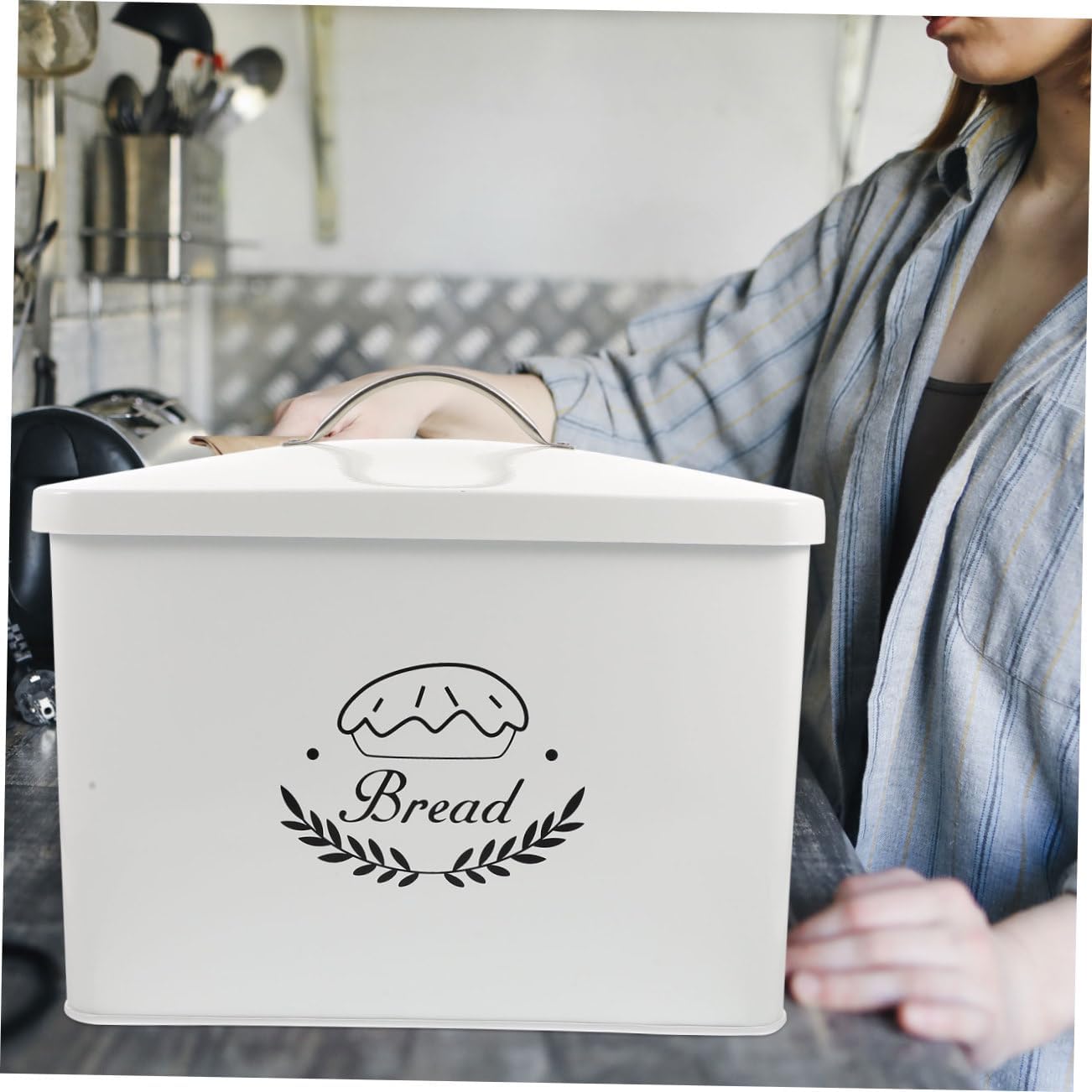 Package Include 1 x Bread Box Features -Material:Iron -Size:33.00X23.00X18.00cm/12.97X9.04X7.07in -Product Info:Bread box -Color:White -There is an enough large space inside the bread box, which can accommodate much bread than your imagination kitchen supplies. -The stylish and simple appearance will not add a sense of abruptness to your kitchen decoration kitchen rice holder. -It is small and light, which will not occupy too much space of your kitchen and affect your operation in the kitchen bread organizer. -Designed with cover, which is easy to use, and you just need to push the cover lightly to open the bread box iron rice bucket. -Made of premium and stable material, which is and serves you for a long time.Goods Informationkitchen supplies And it can make your kitchen become more organized and neat, which is a good helper for your kitchen.grain container This bread box can help you store your bread or snacks that you bought before, and the enough large space of this bread box can satisfy daily storage requirements