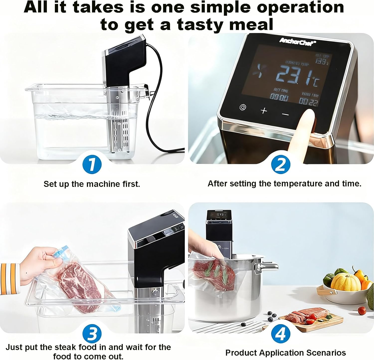 Are you looking for a reliable solution to manage temperature fluctuations in your cooking? Our commercial-grade low-temperature slow cooker is designed to address common cooking challenges faced by both professional chefs and home cooks. With precise temperature control, high efficiency, and a large capacity, it ensures that you achieve perfect results every time. Experience the advantages of our 1600W high-power slow cooker, which offers rapid heating and ±0.1°C precise temperature control technology. The expansive 70L capacity is ideal for preparing large quantities of food, making it perfect for busy kitchens, hotels, and family gatherings. Plus, its ultra-quiet operation allows you to cook without disturbing your environment. The user-friendly LED LCD display and 360-degree constant temperature 3D water circulation system guarantee consistent results, whether you’re cooking delicate meats or hearty stews. Our commitment to customer satisfaction ensures that you receive comprehensive after-sales support, allowing you to enjoy a worry-free cooking experience. If you’re not fully satisfied with the product, we encourage you to reach out to us. Specifications: - Name: Vacuum Slow Cooker - Voltage: 110/220V - Power: 1600W - Waterproof Level: IPX8 - Heating Capacity: 70L - Timing Range: Up to 100 hours - Material: Stainless Steel - Temperature Range: 0-99°C - Circulating Water Volume: 25 liters/minute (+15%) - Size: 130*115*320mm - Weight: 2.1 kg Packing List: 1 x Sous Vide Machine Transform your cooking experience with our low-temperature slow cooker, where precision meets convenience.