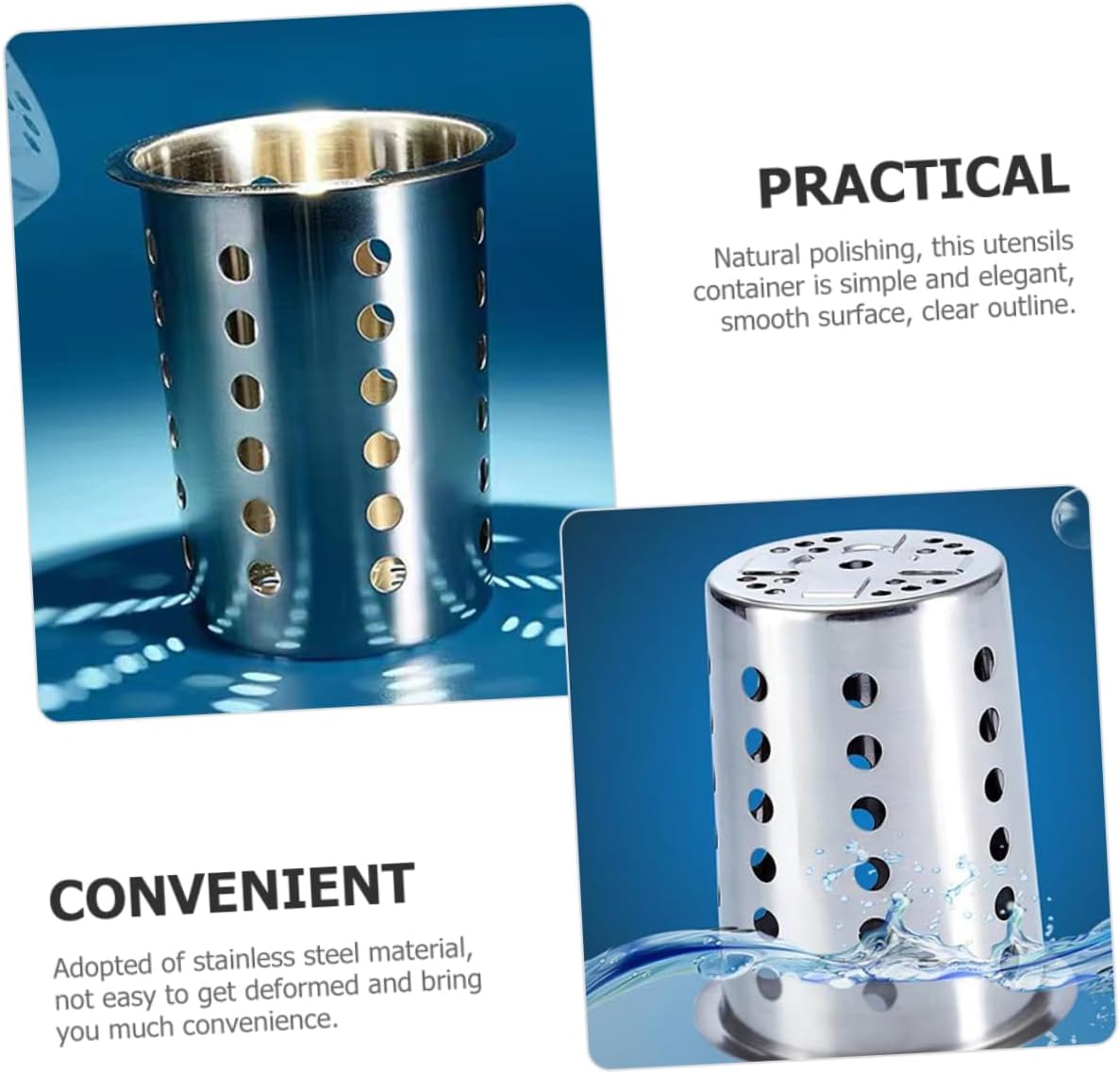 Package Include 3 x chopstick container Features -Color:Silver silverware drawer organizer - Size: 13.80X11.50X8.60cm/5.42X4.52X3 utensil hanger. -Material:Stainless steel holder - Function: Suitable for storing, drying and preserving cooking utensils. It can hold your cutlery, dry utensils, spatula, chopsticks clear utensil organizer. - Simple in structure, this utensil holder is easy to use, not easy to deform, you can use it with confidence . - This utensil holder is suitable for storing all kinds of cutlery, such as spoons, forks, chopsticks, etc counter. - It reduces kitchen sink and counter clutter. The stainless steel chopstick container itself is also easy to clean metal utensil holder. - The kitchen utensil holder has hollow out design, keep ventilation, can keep the tableware dry stainless steel utensil holder.Goods Descriptionkitchen tool organizer The craftsmanship can serve you well without breaking easily.cooking utensil holder This kitchen utensil holder is a very practical and reliable for your needs.kitchen countertop organizer The kitchen utensil holder is convenient and practical, with excellent texture, and without being easily damaged