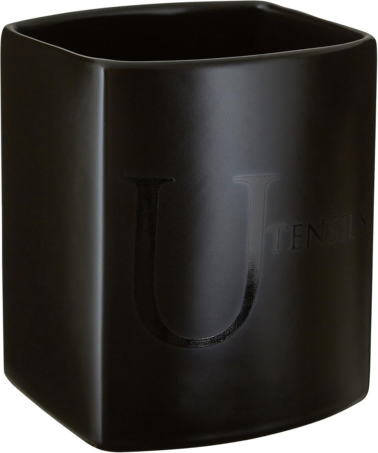 Black ceramic text utensil jar.