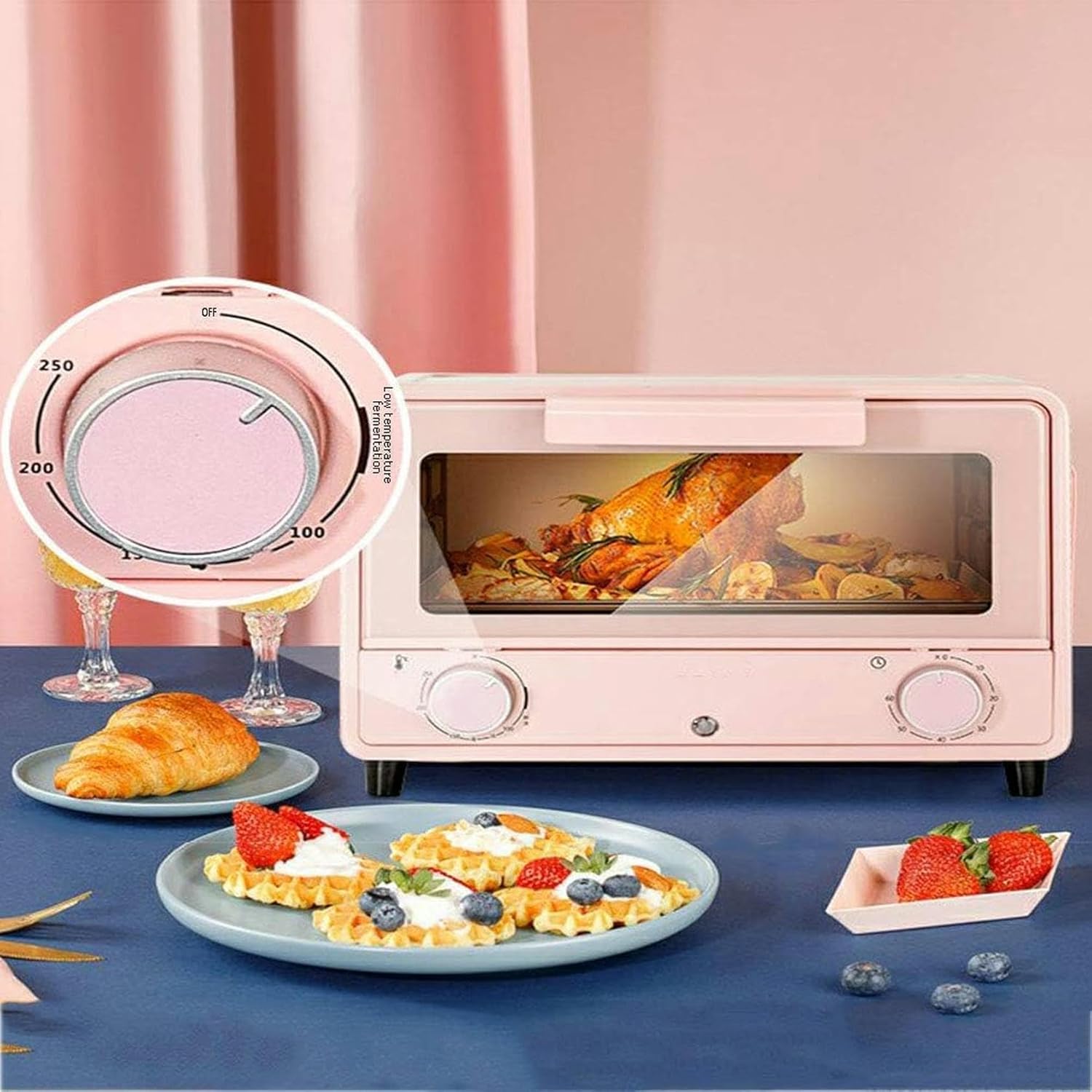 Color: Pink. Description: 1. Dimensions (length x width x height): Approximately 340 x 220 x 240 millimeters, 12 liters. 2. Multi functional, such as barbecue, thawing, baking, etc. 3. Install a safer glass so that you can clearly see how well the food is cooked. 4. Food can be heated to 230 degrees, and the oven has precise temperature control to better maintain the taste of the food. With the help of a timer, your food won't burn. 5. The oven is equipped with heat-resistant glass. It is safer and more transparent, so food can be baked correctly and you can clearly see the situation. Specifications: Name: Electric Furnace Control method: Mechanical Volume: 12L Rated power: 750 watts. Material: Stainless steel. Time range: 60 minutes. Rated voltage: 110-240V. Temperature range: 0-250 ℃. Color: Pink. Open the door: sliding door. Oven style: horizontal Packaging content: 1 mini oven. 1 baking tray. 1 grill. Sincere service: We provide high-quality products and professional services. If you have any questions, you can contact us at any time and we will contact you as soon as possible within 24 hours.