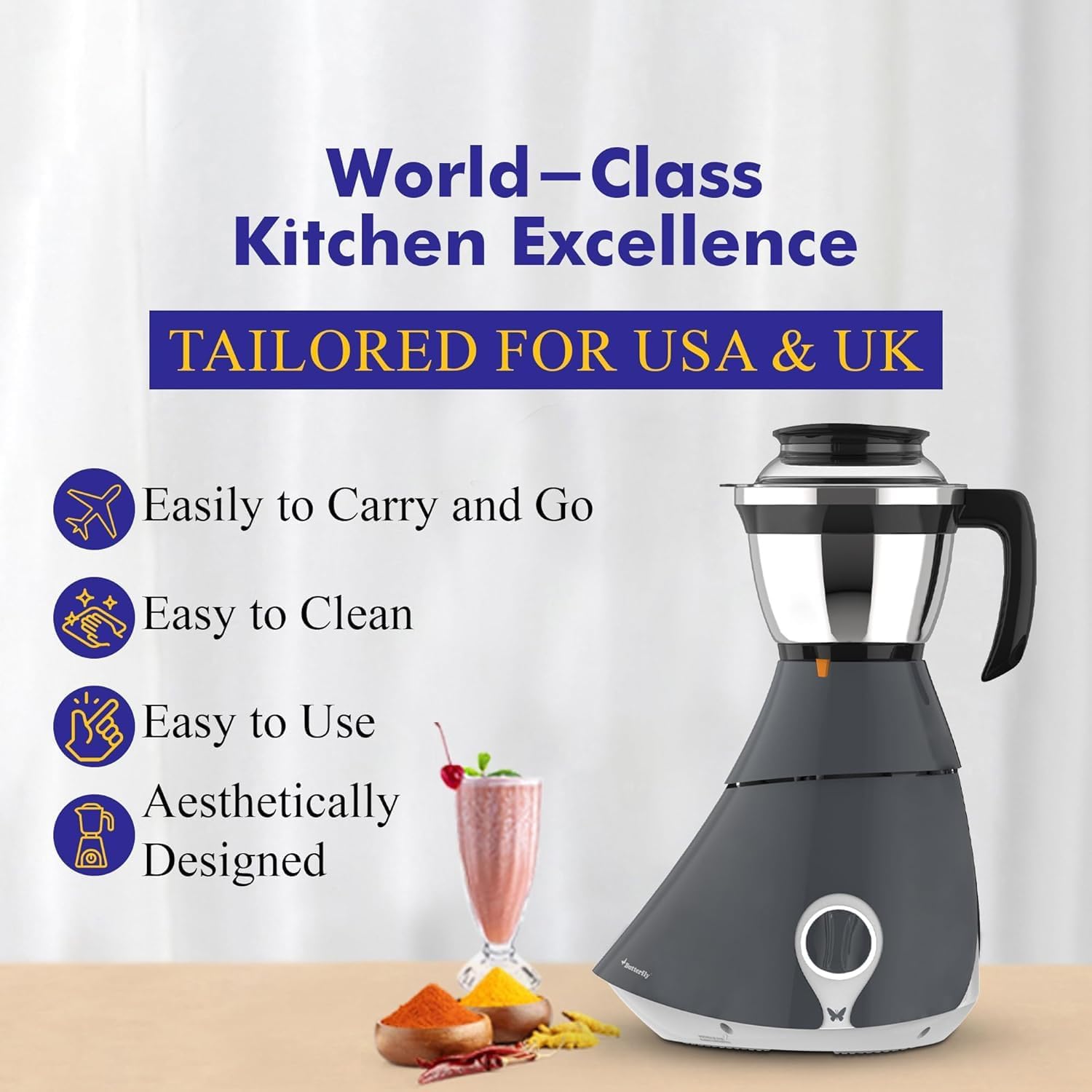 110 V Butterfly 4 Jar Mixer Grinder Stainless Steel Jars Matchless 550 Watts