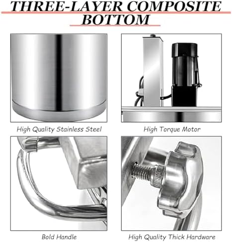 Introducing our Commercial Electric Food Mixer, the ultimate solution for chefs and home cooks alike. Designed for stirring stews, soups, sauces, and porridge, this automatic stirring pot is available in three generous capacities: 40L, 80L, and 140L. Experience consistent and efficient mixing with our innovative double-layer scraper, which ensures even blending without leaving any residue in the pot. The powerful pure copper motor enhances your cooking experience, providing reliable performance whether you're preparing a large batch for a family gathering or a small portion for daily meals. Crafted from high-quality stainless steel, this food mixer is built to last. Its composite three-layer pot bottom ensures optimal heat distribution, allowing your dishes to cook evenly. The device's versatility shines through with options for both gas and electric heating, accommodating various kitchen setups. With a user-friendly design, the Commercial Electric Food Mixer is perfect for both professional kitchens and home cooking environments. Its dimensions are tailored to fit your needs, with outer diameters of 42cm, 52cm, and 62cm, and inner depths that match each capacity. Specifications: - Material: Stainless Steel - Heating: Gas/Electric - Voltage: 110V/220V - Power: 180W (40/80L) / 300W (140L) - Weight: 18KG / 24KG / 32KG Included in the package are the stainless steel stand food mixer, a detailed product manual, and a 1.5-meter power cord for your convenience. Please note: For optimal performance, avoid using medium and high-pressure furnaces, as excessive heat may damage the pot's bottom. Elevate your cooking experience with our Commercial Electric Food Mixer, where innovation meets convenience. Perfect for those who value quality and efficiency in their culinary endeavors.
