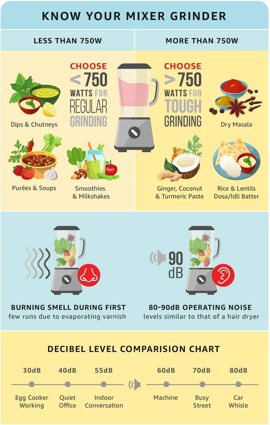 Stylish body design. Polycarbonate transparent lid for multipurpose jar and mixer mate. Vacuum rubber shoes for extra grip. Butterfly ABS Plastic Grand 500 Watts Mixer Grinder, Blue