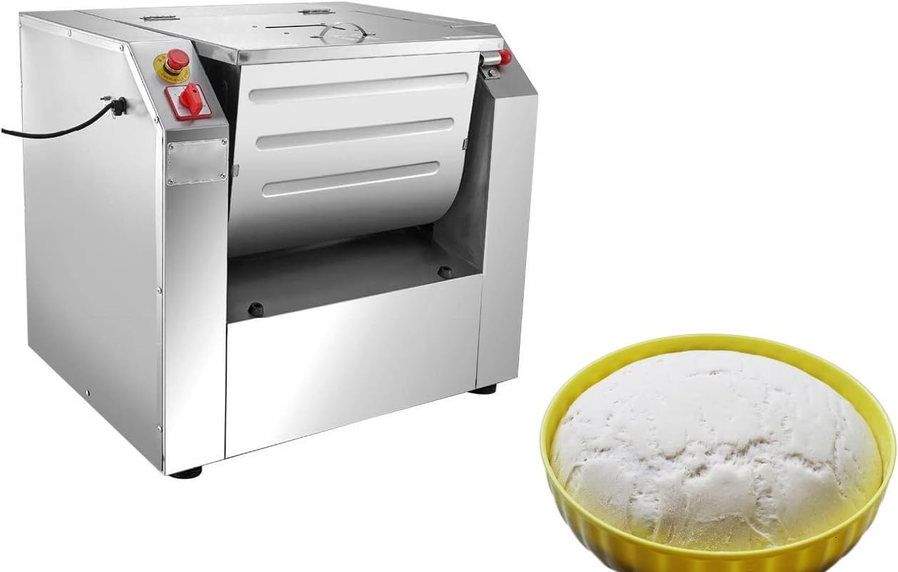 Specification: Model:7.5KG,15KG,25KG,50KG Voltage:110V/60HZ,220V/50HZ Time:10-15 minute Barrel capacity: 7.5KG,15KG,25KG,50KG Power:1100W,1500W,2200W,3000W Dough weight:5-7.5KG,10-15kg,15-25kg,30-50kg Machine’s weight:45kg,63kg,75kg,110kg Machine’s size:22.4*17.9*23.6inch(570*455*600mm),25.5*21.2*27.1inch(650*540*690mm),30.3*27.5*35.4inch(770*700*900mm),35.4*27.5*35.4inch(900*700*900mm) Feature: 1.7.5kg flour mixing weight: 5-6.5kg dough mixed at one time, only 10-15 minutes, high efficiency 2.15 flour mixing weight: 10-15kg dough mixed at one time, only 10-15 minutes, high efficiency 3.25kg flour mixing weight: 15-25KG dough mixed at one time, only 10-15 minutes, high efficiency 4.50kg flour mixing weight: 30-50kg dough mixed at one time, only 10-15 minutes, high efficiency 5.Perspective window,Open the cover and stop running:It can observe the working condition in the barrel and detect it in real time,Open the lid to stop the operation and ensure safety 6.The 7.5kg flour mixing machine is a diamond round knife,15kg, 25kg, 50kg kneading machine can choose round knife or flat knife,The round knife is more suitable for mixing dough, while the flat knife is suitable for mixing meat stuffing or mixing dough. 7.Stainless steel material 8.Simple operation panel:Simple operation With emergency stop button, safe and reliable. 9.Non Slip Rubber Foot Pad,Keep the machine running stably,Effectively reduce noise
