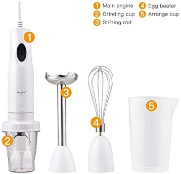 Material: ABS+304 stainless steel+PP Voltage: 110-240 V Power: 150W Gear: single gear Be careful while making hot soups. This hand blender is not intended for use by children. Blades are sharp. The motor is not dishwasher safe. Do not press continuously ''Power'' or ''Turbo'' button longer than 1 minute. Be sure the food is cut into small pieces before putting into the work bowl. It is compact, light and easy to use. The handle design is ergonomic, comfortable to hold, saves time and effort, and is a good helper for the kitchen.