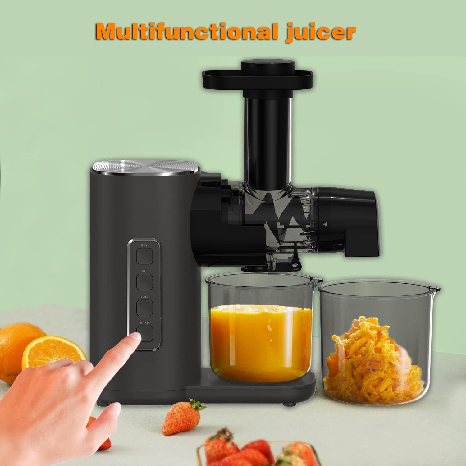 This compact yet powerful juicer boasts a whisper-quiet operation, ensuring a peaceful environment while you extract the maximum goodness from your fruits and vegetables. Featuring advanced pulp separation technology, this juicer guarantees high juice yield with minimal pulp residue, providing you with nutrient-rich drinks every time. Its dual feeding chutes allow for easy juicing of a wide variety of produce, from sturdy vegetables to delicate fruits, without the need for pre-cutting. Cleanup is a breeze with its easy-to-clean design, making it a convenient addition to any kitchen. Whether you're a health-conscious individual looking to boost your daily intake of vitamins and minerals or a juice enthusiast seeking superior juicing performance, our high-yield juicer in sleek black is the perfect choice for you.