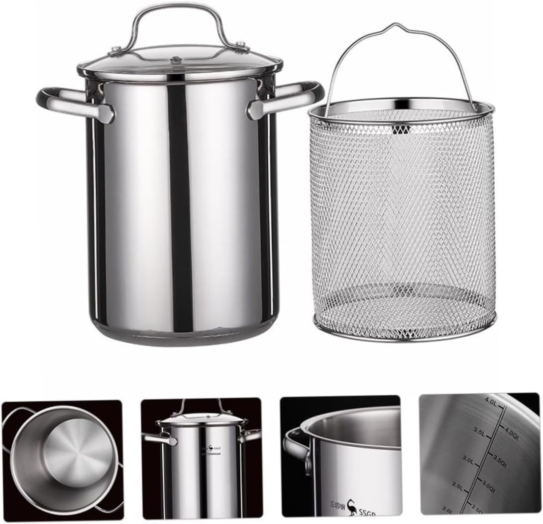 Package Include 1 x fryer 1 x frying basket Features - Color: Silver large deep frying pan with basket. -Product Info:Stainless steel fryer - Size: About 28.00X24.50X24.50cm/11.00X9.63X9.63inch chicken fryer pot. - Material: Stainless steel large fryer with basket for stovetop. - Stew the whole chicken easily in a large volume in a small pot small deep frying pot with basket. - The three-layer remaking process saves energy and time fryer basket pot. - Increase the height of the pot, frying to reduce the of oil scald, keep the kitchen sanitary mini fryer with basket. - High pot anti overflow a pot multi-purpose save 50% oil spillage anti splash french fry pot. - Suitable for home, restaurant and kitchen use tall stainless deep fry pot.Goods Informationdeep frying pot with basket Japanese tempura is a deep-fried delicacy that is delicious and appetizing to go with any other meals.large deep frying pan with basket Comes convenient drainer basket that uses less oil.tempura frying pot This mini deep fryer pot makes it convenient to deep-fry your own tempura at home