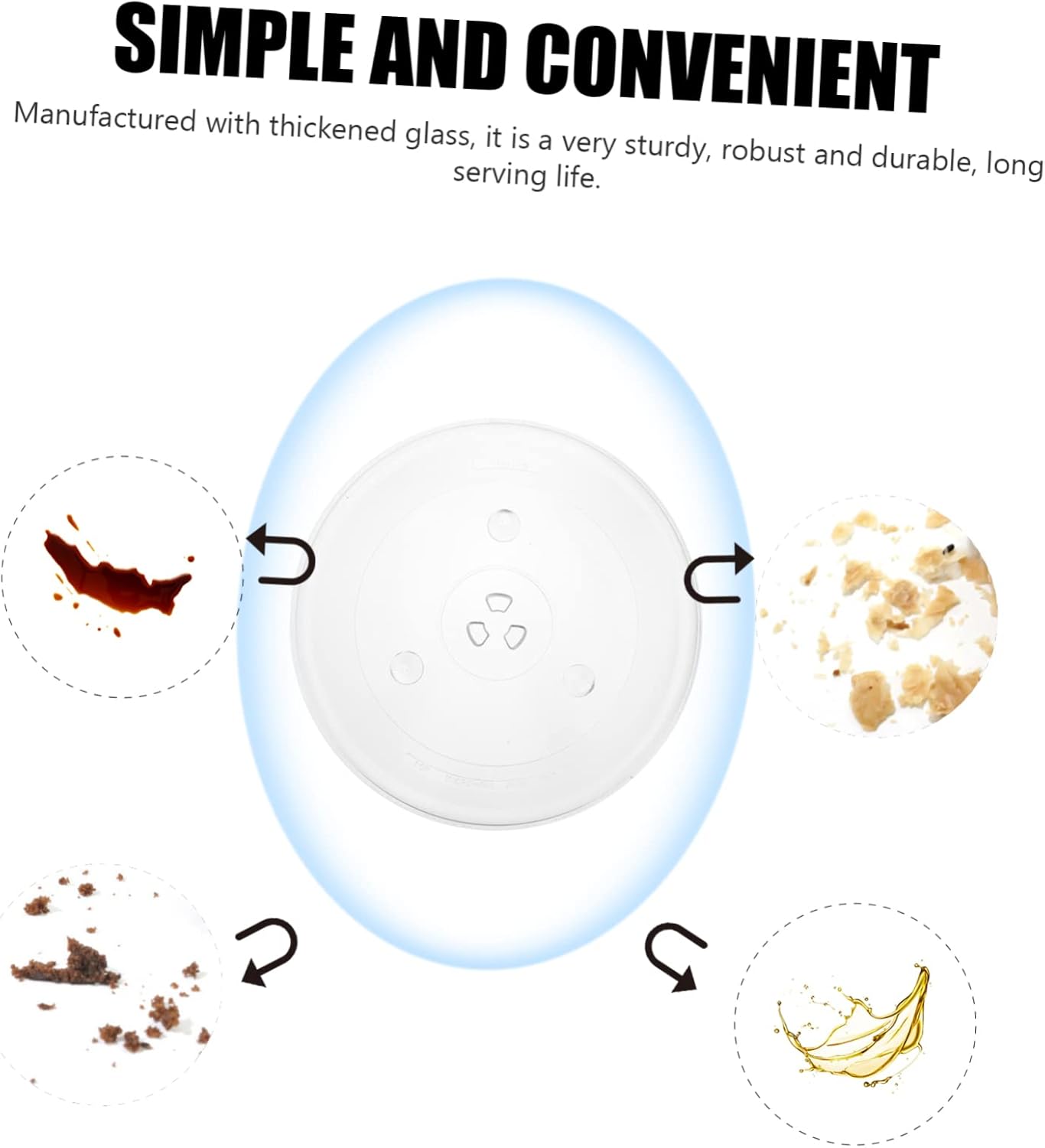 Package List 1 x Microwave Oven Turntable Characteristics -Color: White oven cooking plate -Material: Glass microwave plate -Size: 31.50X31.50X0.50cm/12.38X12.38X0.20 in microwave turntable tray. - This glass plate is designed with 3 small pips and indentations on base to enable it to sit securely on the center support oven - It has a simple design, but very in use, giving you a using experience oven replacement turntable. - Work well with microwave oven, allow your foods to be heated quickly and safely oven glass turntable. - Use it to replace your old or broken one, make your microwave oven all the time microwave oven cooking - The round plate is sturdy and due to the high grade thick glass microwave turntable.Goods Descriptionoven plate Made of glass material, which is and for a long time use.oven tray It is heat resistant for microwave oven use.microwave turntable tray And it is also easy to clean the dirty stains, so convenient.oven replacement turntable Nonslip surface, the food on the plate will not easy to slide during heating up