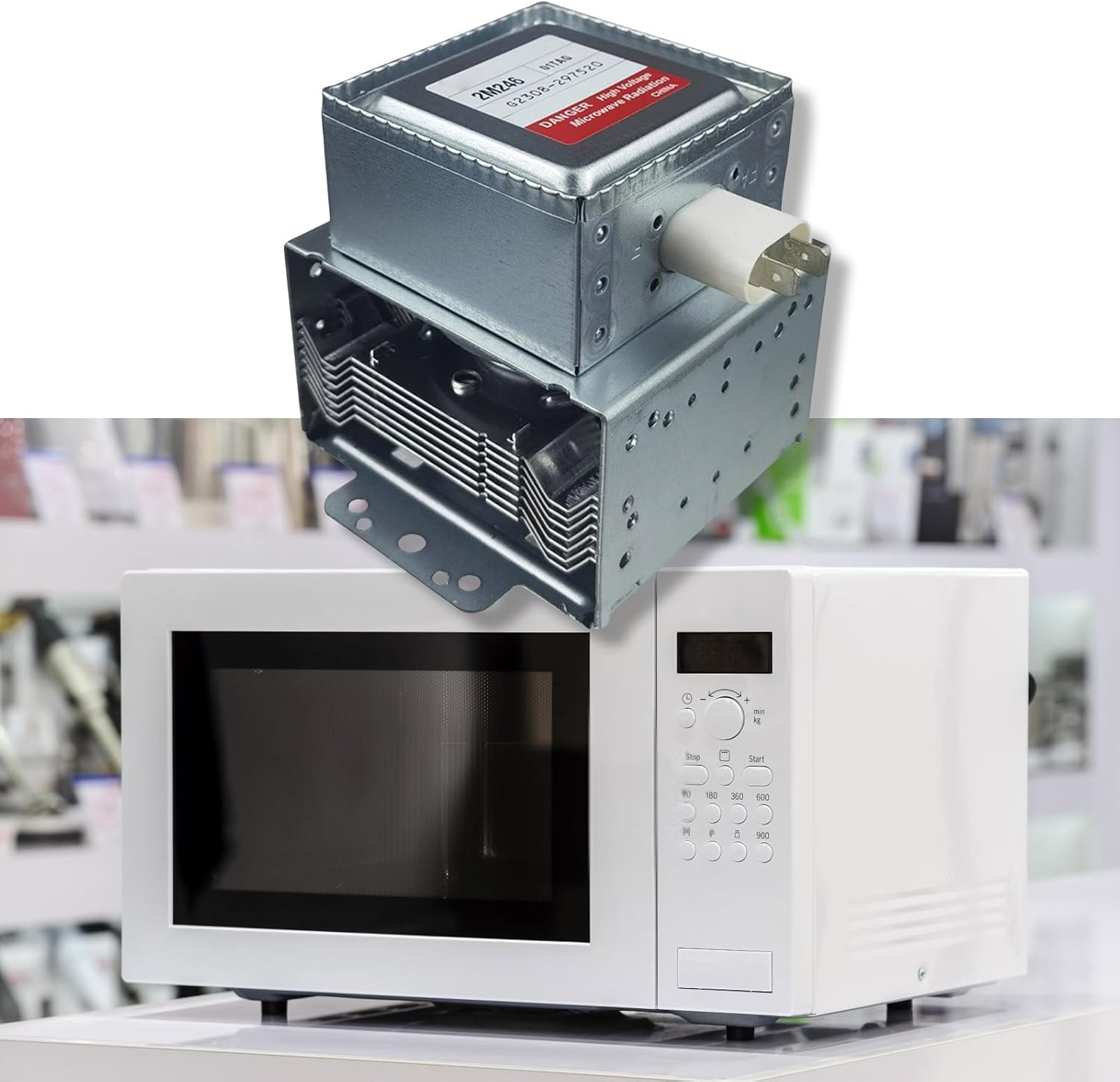 Feature: Ensures that your microwave is heated efficiently with our microwave magnetetron, the replacement part for model 2M246-01TAG. This magnetron features a construction and is designed for easy installation, providing heat output and durability. Suitable for homeowners who want to repair their microwave or technicians looking for parts for maintenance tasks. Suitable for use in residential kitchens as well as commercial environments such as restaurants and food processing facilities where microwave ovens are commonly used. Improves the functionality of your microwave with this essential component that promises even and even heating and improves your cooking and food preparation. Technical data: Texture: metal. Size: as shown in the picture. Note: Please allow 1-2cm differs due to manual measurement. Due to the difference between different monitors, the picture may not reflect the actual color of the item. Package includes: 1 x Microwave Magnetron