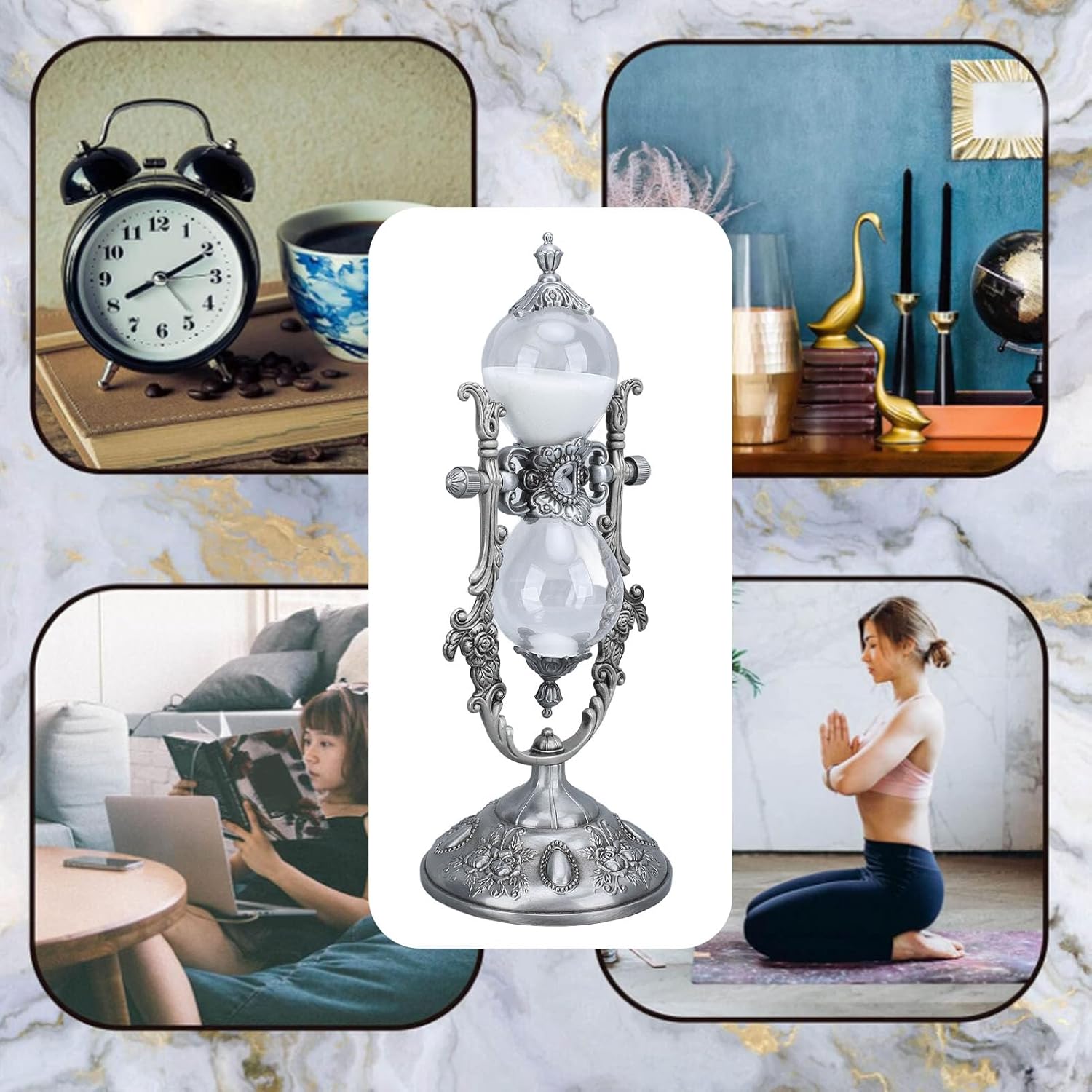 Technical data: Item Type:Hourglass Timer Material: zinc alloy. Size: approx. 22 x 8.5 cm / 8.7 x 3.3 inches. Package list: 1 x Antique Hourglass Timer 1 x base. Please note: Please allow 0-1 cm error due to manual measurement.