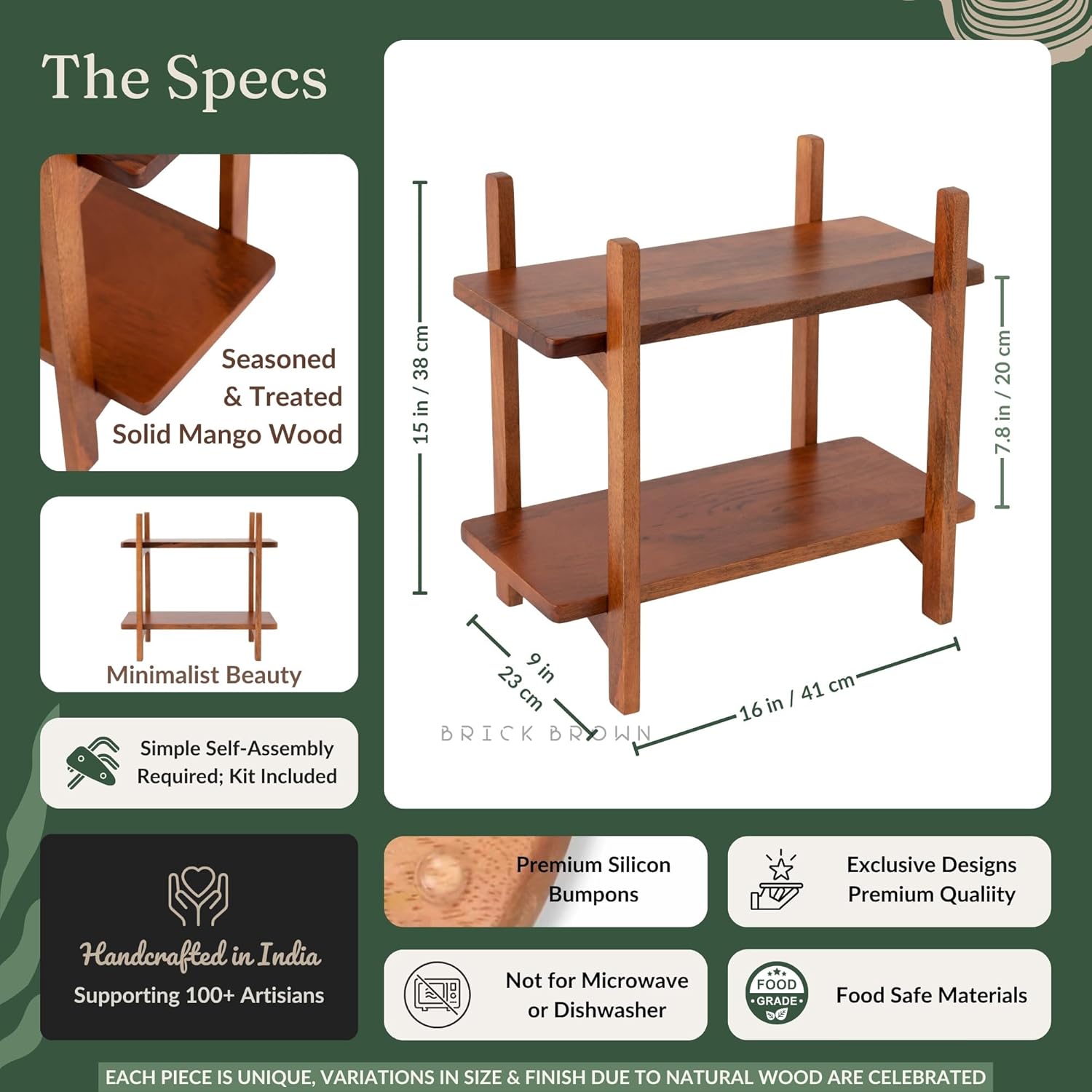 Introducing the Zen Organizer by Brick Brown, a beautifully crafted storage solution designed to bring harmony and elegance to your home. Made from solid mango wood with a rich light walnut finish, this 2-tier countertop organizer is a blend of minimalist design and functional versatility. Each piece is handcrafted by skilled artisans, ensuring unique craftsmanship with clean, tranquil lines that add a sense of order to any room. Whether in the kitchen, bedroom, dining room, or living room, the Zen Organizer provides stylish storage for spices, groceries, or other essentials. Designed for effortless self-assembly, this organizer combines beauty with practicality, perfect for elevating your home decor.