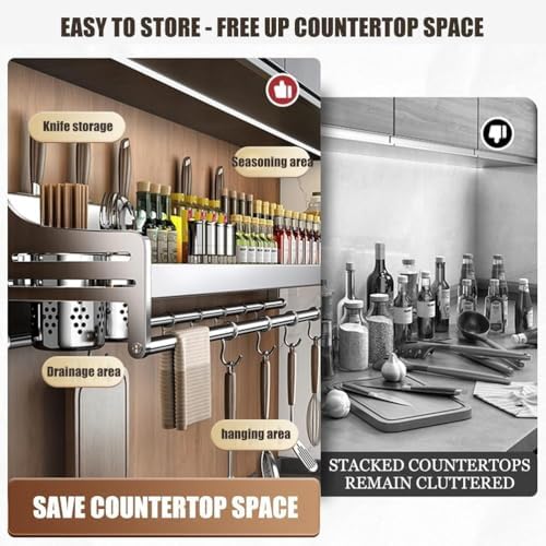 Introducing our Premium Kitchen Shelf Storage Organizer, a must-have addition for any cooking enthusiast looking to enhance their kitchen efficiency. This versatile organizer is designed to elevate your culinary space, providing a stylish and functional solution for storing your essential kitchen tools. **Stable & Durable Construction:** Crafted with a thickened base, this organizer ensures strong bearing capacity for your heavier utensils, guaranteeing long-lasting use. You can trust that your kitchen tools are safely stored without compromising on stability. **Air-Drying Design for Optimal Hygiene:** Our open storage concept promotes excellent ventilation, keeping your kitchen utensils dry and fresh. Say goodbye to dampness and odors, and enjoy a cleaner, healthier cooking environment. **Extra Storage Capacity:** Designed with convenience in mind, this organizer can effortlessly hold a variety of kitchen items including knives, scrapers, cutting boards, and tea towels. Whether you’re preparing a quick meal or hosting a dinner party, everything you need will be within easy reach. **Multiple Size Options:** Available in five different sizes (40cm, 50cm, 60cm, 70cm, and 80cm), this organizer can fit perfectly in any kitchen space, whether small or large. Choose the size that best suits your needs and transform your kitchen into an organized haven. Elevate your cooking experience with our Premium Kitchen Shelf Storage Organizer. It’s not just about keeping your kitchen tidy; it’s about creating a space that inspires creativity and efficiency in your culinary adventures. Enjoy the benefits of a well-organized kitchen and make meal prep a breeze!