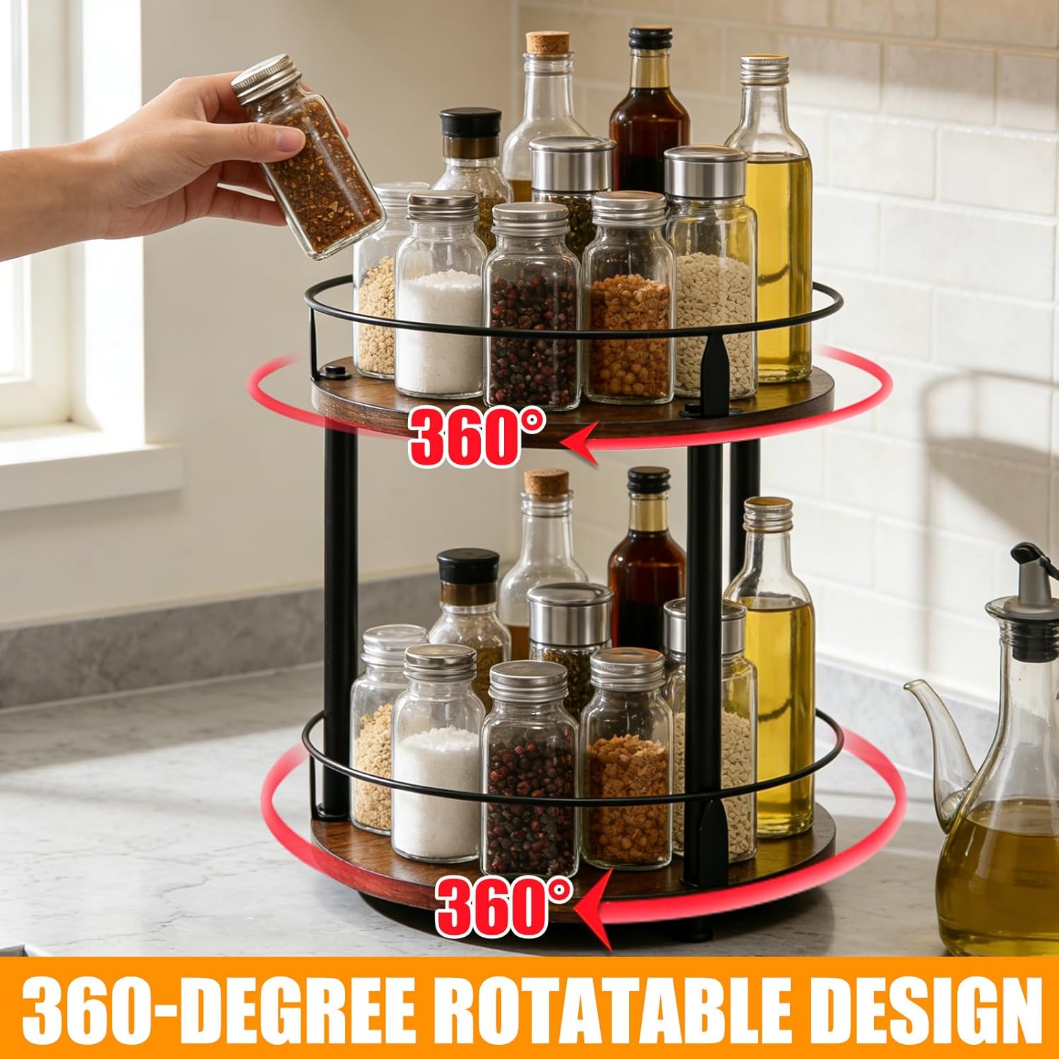 • ✅ Two Tier Lazy Susan-Versatile Rustic Brown Lazy Susan for Every Room-More than just a spice racks solution—use it as a lazy susan organizer on your dining table for sauces and dressings, in the bathroom for lotions, or in the craft room for supplies. Its industrial rustic brown finish adds warm, farmhouse charm to any space while delivering space-saving, compact & versatile storage.