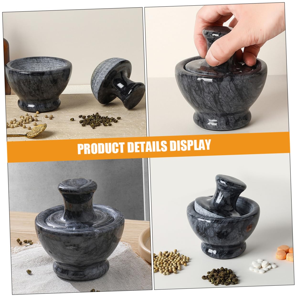 Package Include 1 x 1 x pestle Features -Material:Marble household ginger and garlic grinder -Size:10.00X9.50X9.50cm/3.93X3.73X3.73in tools for grinding spices -Color:Black spices grinding stone -Product Info:Mushroom head mortar -The spice pestle set is made of marble materials, which are , safe and clean grinding bowl for restaurant. -Fine workmanship and beautiful appearance its popularity and practicality spices pot. -The pestle kit not only grinds food, it also grinds supplements, and pills marble pestle. -Household Pot is suitable for chili, garlic, grains, Chinese medicine powder, etc. It has a wide range of uses and is healthy and safe to use grinder pestle. -You just need to put the items in the and hit them firmly with a pestle until they become mud or broken pestle.Goods Descriptiondried fruit grinding tool No longer leave smell on your hands, clean and safe.pepper grinder Household Grinding Bowl is easy to clean and use.grinder pestle This pestle kit is made of marble materials and is to use.pestle marble It is a must-have assistant in the kitchen, adding convenience to your kitchen life