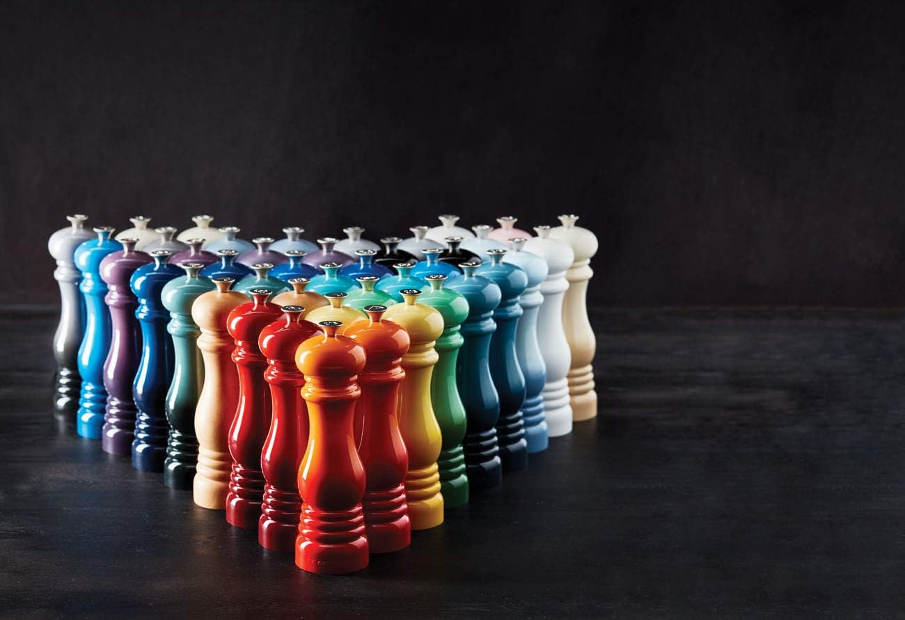 Le Creuset salt and pepper mills combine classic form and modern technology with our iconic colors. The ceramic grinder is strong enough to crack peppercorns and corrosion-resistant for grinding salt. Adjust the grind setting with a turn of the knob - clockwise for a finer ground and counterclockwise for a coarser grind.
