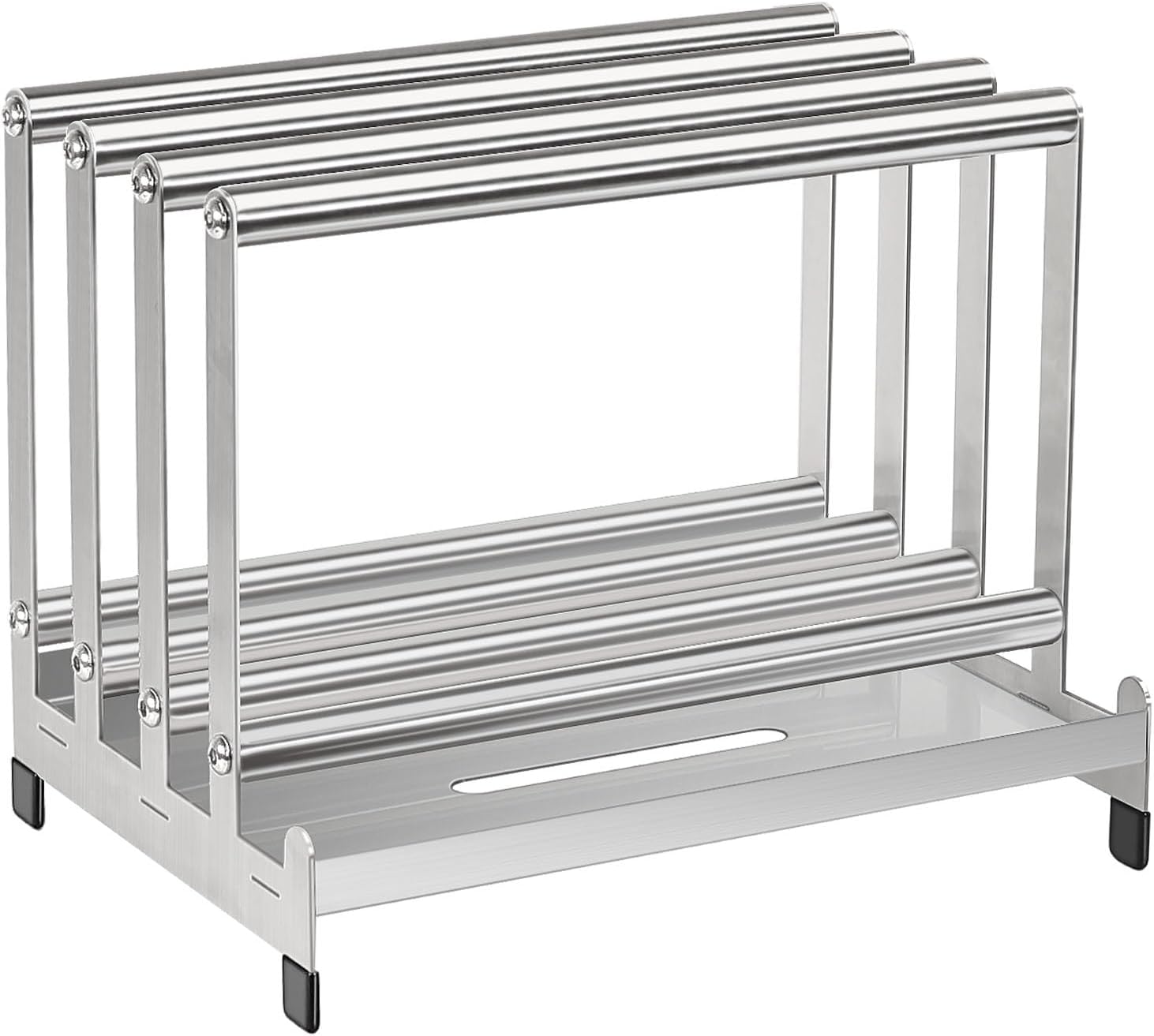 Pizza Peel Rack Stainless Steel With Non-Slip Feet Pizza Turning Peel Pizza Paddle Holder Rack 4 Available Slots Organizing and Saving Space, No Pizza Oven Tools, silver