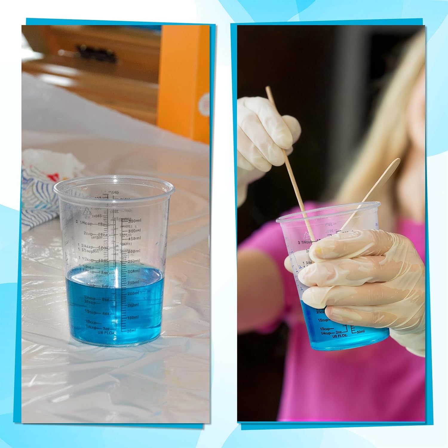 Features: Our plastic mixing measuring cups are great for mixing and measuring pigments, resins, epoxies, stains, arts and crafts materials. The disposable measuring cups for resin can be applied for DIY creations, painting projects, science experiments, teaching demonstrations and more, as well as for cooking, baking, mixing sauces and precise measurement of cosmetic ingredients The clear disposable measuring cups for resin are made of clear polypropylene plastic, sturdy, thick and unbreakable, with a smooth interior and clear graduations. These resin mixing cups are recyclable and can be reused or disposable Specifications: Material: plastic Color: clear Size: 20 oz (600ml) Package includes: 200 x Plastic mixing cups Notes: Manual measurement, please allow slight errors on size. The color may exist a slight difference due to different screen displays