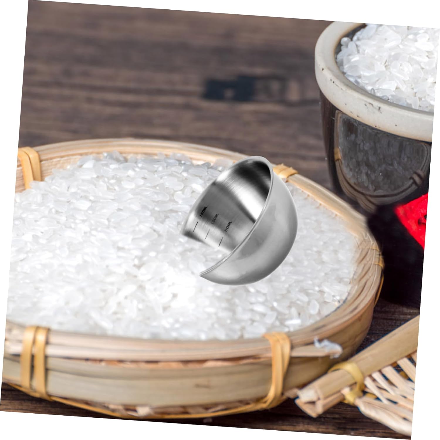 Package Include 1 x rice measuring cup Features -Material:Stainless steel -Color:Silver measuring container -Capacity: 150ml dairy container -Size:9.00X8.60X4.60cm/3.54X3.38X1 rice cooker cup replacement. - Ideal for home use and meets various cooking needs, such as measuring rice or other ingredients accurately kitchen measuring cups. - Not only can measuring cup be filled with rice, but it can also be filled with grains, flour, beans, etc syrup measuring cup. - The convenient measuring scale on this rice measuring cup accurate measurement of rice flour cup. - Adopted simple ing with smooth surface, measuring cup is comfortable to grip Convenient Measuring Cup. - Thickened rices measuring cup with simple color, fine material make it practical and convenient to use metal measuring cups.Goods Descriptionmeasuring scale cup Every cup is old-fashioned designed conveniently to scoop rice and other dry seasoning.liquid measuring cup This rice measuring cup for household use, which is made of stainless steel material.Kitchen Measuring Cup You can use measuring cup as a kitchen helper