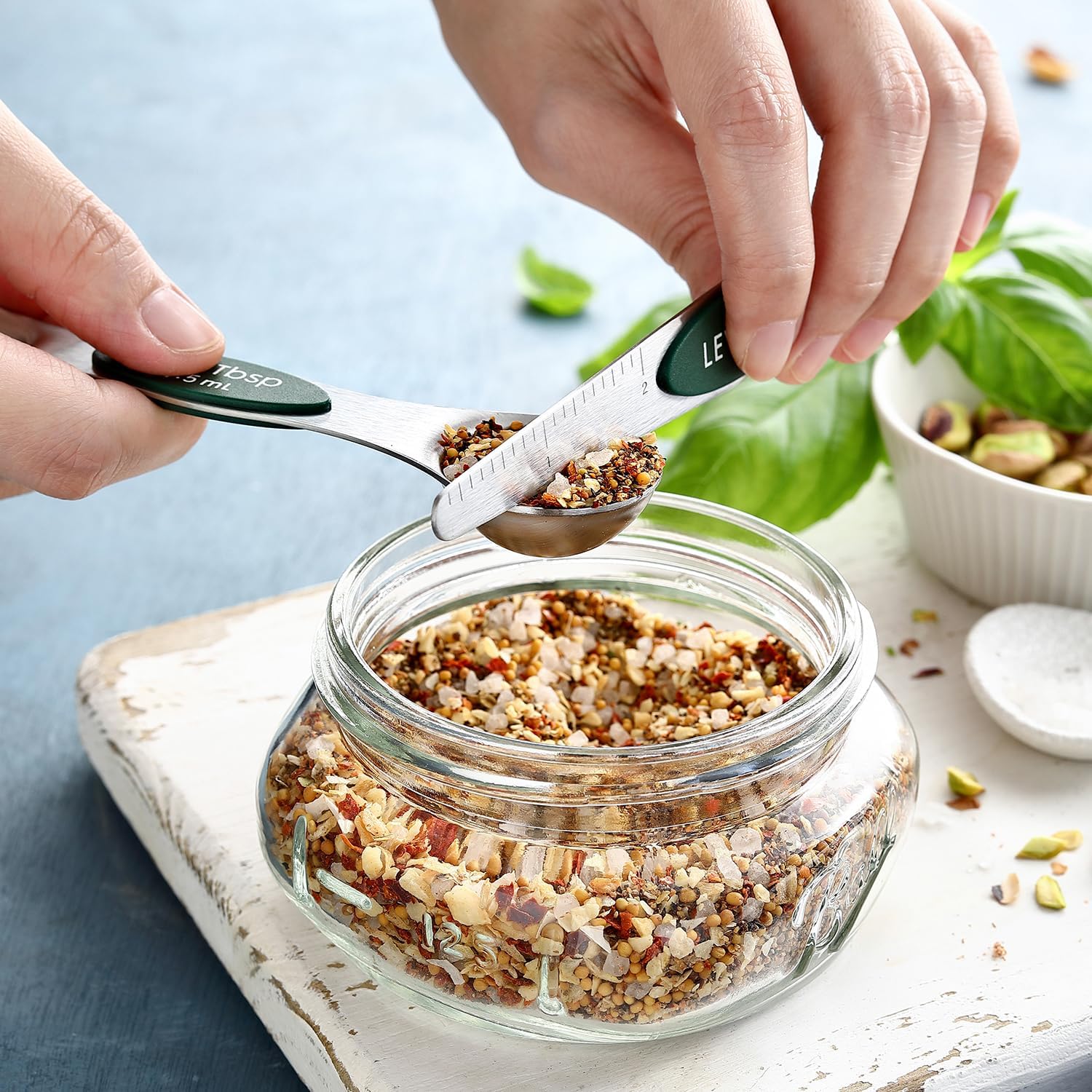 Spring Chef Dual Sided Magnetic Measuring Spoons Set, Pine Green, Set of 8 & Stainless Steel Measuring Cups, Set of 7 - 2 Product Bundle