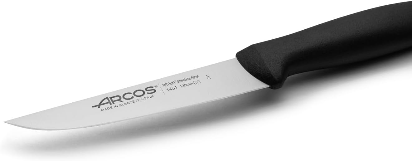 Introducing the Arcos Series Menorca Kitchen Knife - an innovative design that brings high performance and durability to your daily life. Crafted with exclusive stainless steel, the blade is made with NITRUM technology to ensure a long-lasting sharpness that can handle even the toughest of kitchen tasks. The handle of this kitchen knife is made of bluish polypropylene, which not only looks sleek but also provides a comfortable grip that adapts to your hand. The handle's adherence and fine superficial finishing make it easy to hold and maneuver, even during prolonged cutting sessions. This 5-inch kitchen knife is perfect for slicing and dicing fruits, vegetables, and meats with ease. Its compact size makes it easy to handle and store, while still delivering the precision and power you need to tackle any kitchen task. The Arcos Series Menorca Kitchen Knife is an excellent choice for both home cooks and professional chefs. Its innovative design and high-quality materials make it a reliable tool that you can count on for years to come. So why choose the Arcos Series Menorca Kitchen Knife? It's simple: this knife delivers exceptional performance, durability, and comfort in one sleek and stylish package. Upgrade your kitchen today with the Arcos Series Menorca Kitchen Knife and experience the difference for yourself. Keywords: innovative design, high performance, durability, NITRUM technology, polypropylene handle, comfortable grip, adherence, fine superficial finishing, 5-inch blade, slicing, dicing, precision, power, reliable, professional-grade, sleek, stylish.