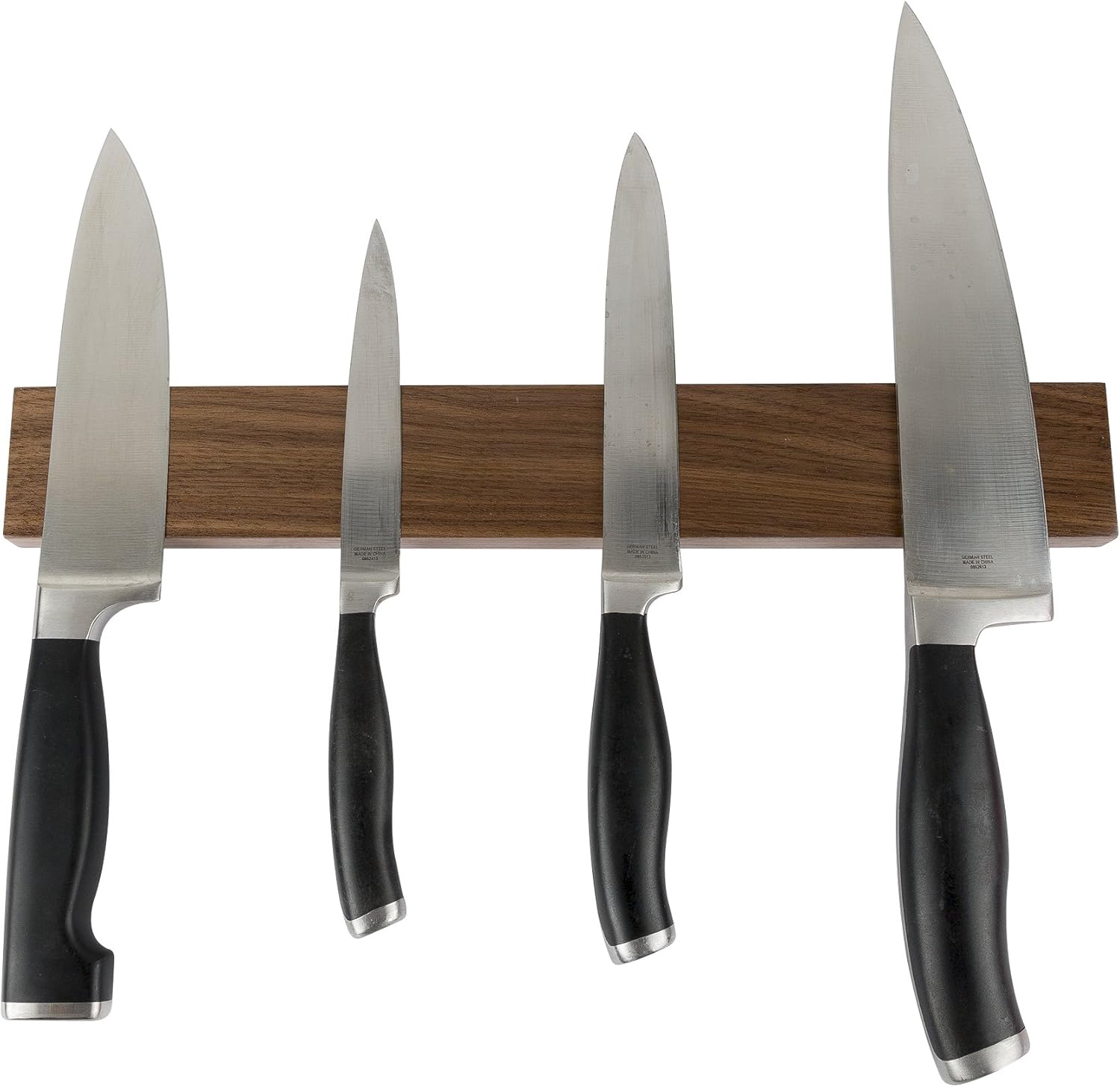This walnut magnetic knife holder is the perfect addition to any kitchen and home. Simple, stylish and functional, it will hold knives and other tools securely so that you can stay organized and free up counter space. Knife blocks are bulky, take up too much counter space and are a perfect breeding ground for bacteria. Metal knife strips can scratch your valuable knives. Buy a walnut magnetic knife holder to get the best of both worlds. Knives not included. Mounting hardware included. AVAILABLE COLOURS: Dark, Light, and Two-Toned.
