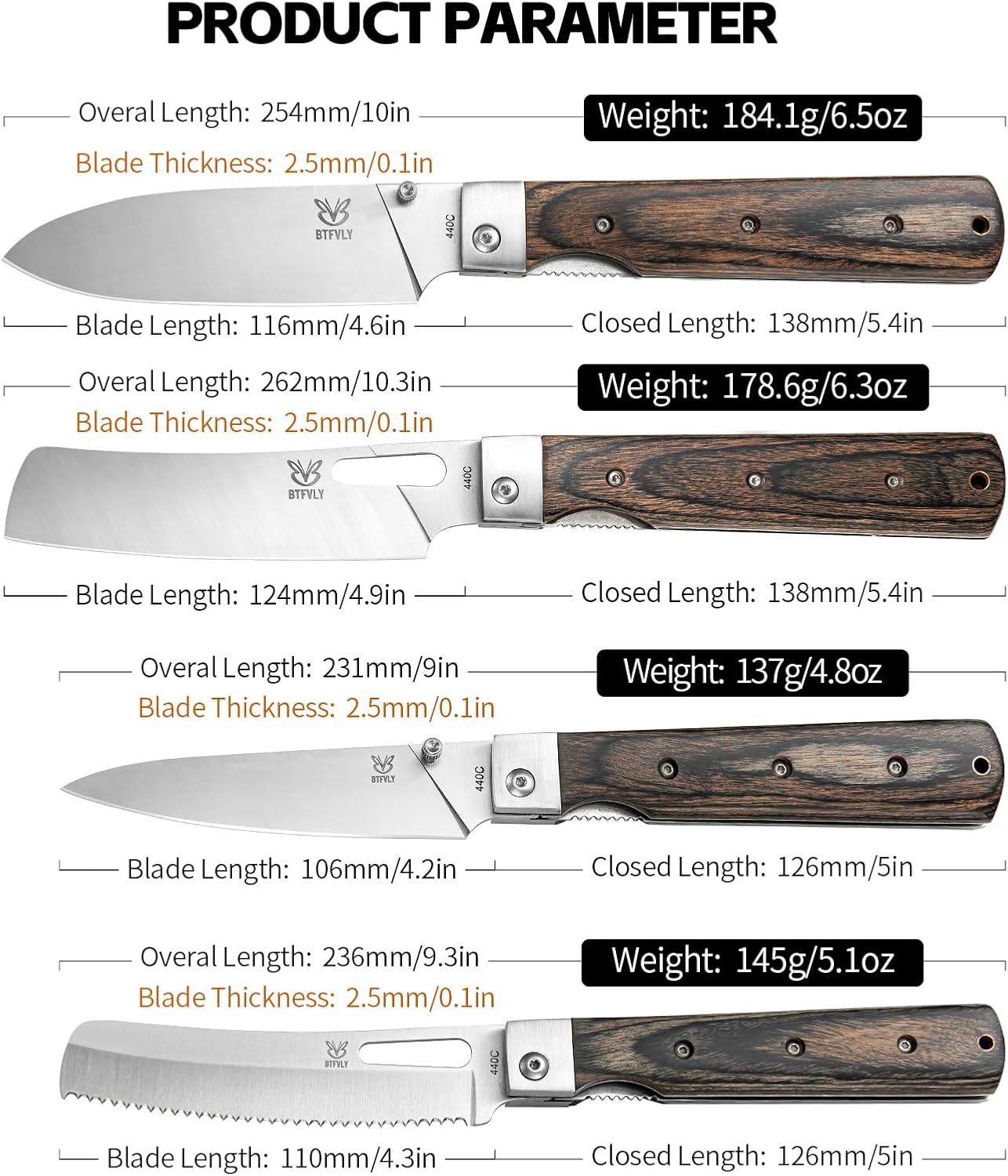 | Blade Material Type | 440A Stainless Steel |