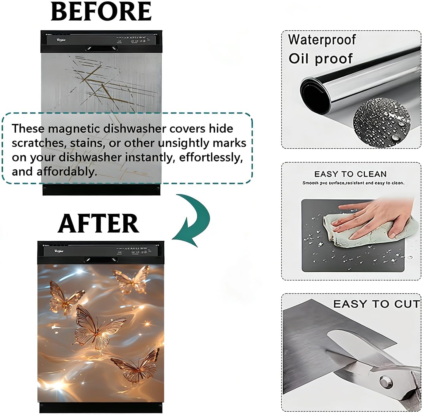 • Use this dishwasher magnetic cover to conceal stains, discoloration, scratches, and signs of aging on the front of your machine. It is a practical solution for renters, homeowners, and anyone wanting a fresh appliance look without replacing the dishwasher.