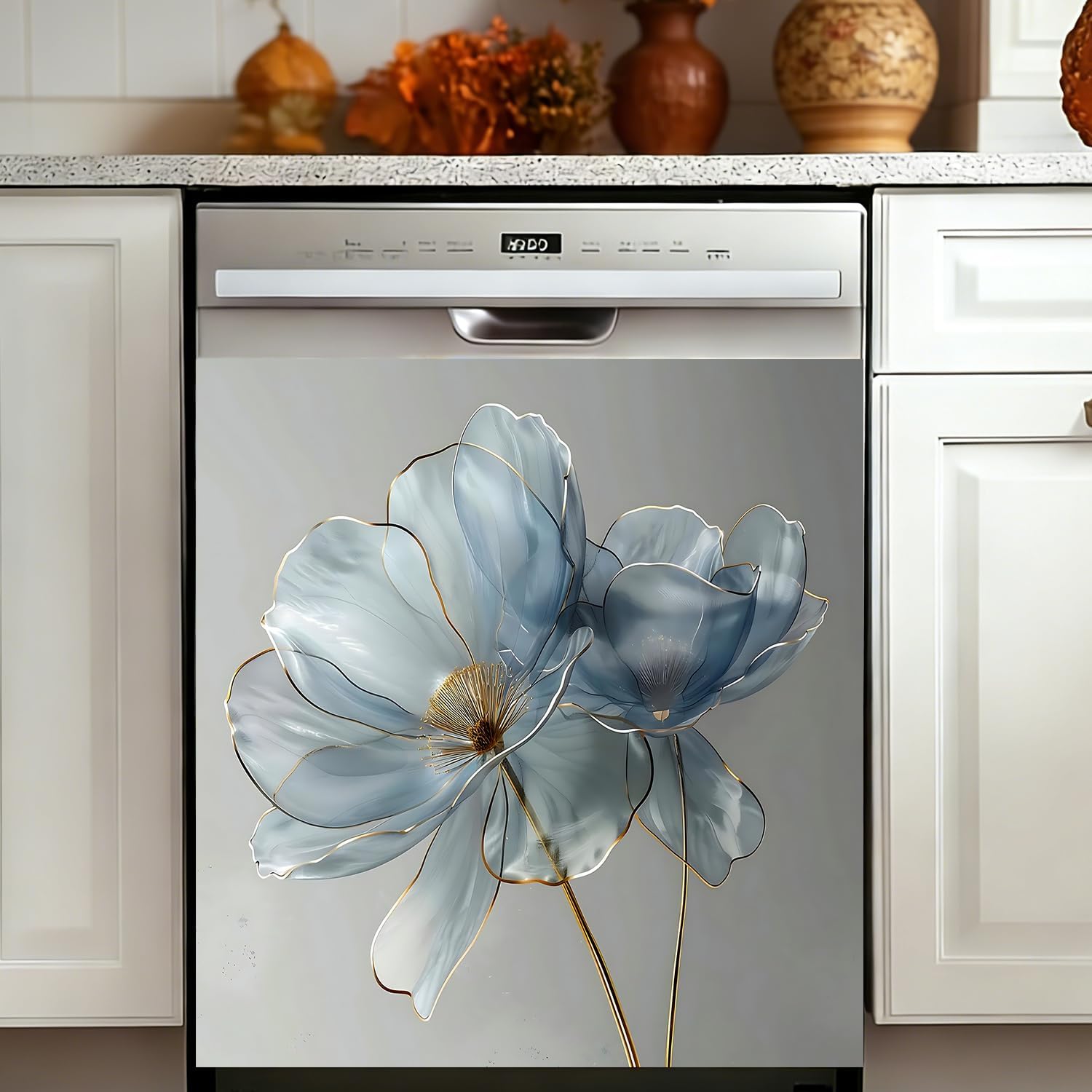 Dishwasher Magnet Cover 23" x 25.5", Golden Butterfly Magnetic Cover for Dishwasher Decorative Appliance Wrap for Kitchen (Flowers 3)