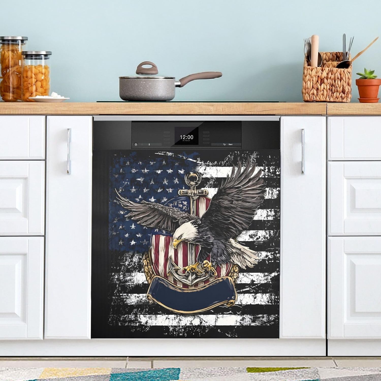 Decorate your kitchen life!This magnetic dishwasher cover is a work of art, decorating your kitchen art, with a sense of fashion and art, highlighting your quality life!Size in 23 x 26 inches. This size fits most dishwashers.Cut it to your own size to fits your need.FeatureWaterproof, heat resistant, scratch and tear resistant. Magnetic stickers hide scratches, dents or other unsightly marks.Magnetic MaterialMagnetic sticker will not fall from magnetic dishwasher and disassemble easily.Protect the dishwasher from scratches, it can also decorate your kitchen home.Please NoteMagnetic dishwasher cover is made of PVC+PET, only suit for the magnet surface.Install: Trim the proofreading position, the magnetic force on the back will stick to it.