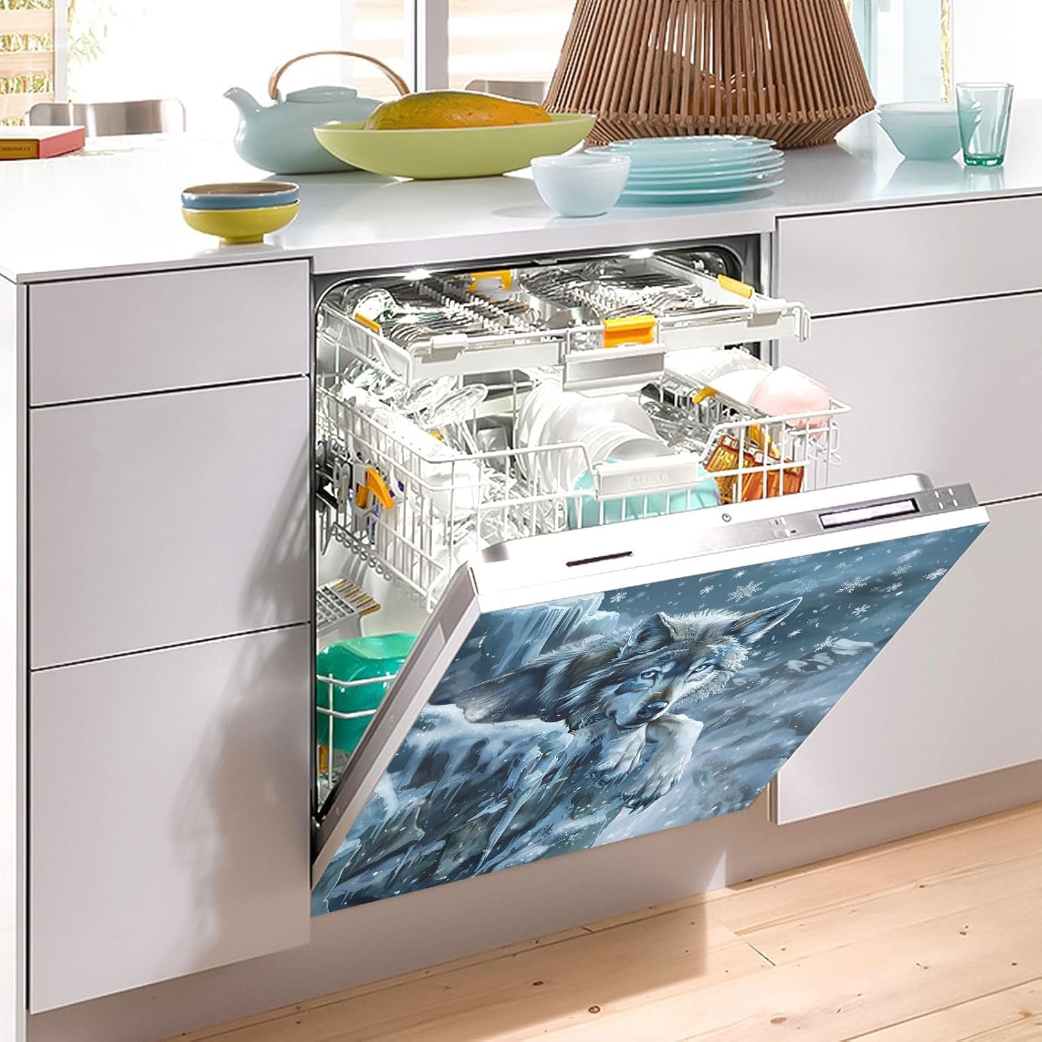 Dishwasher Magnet Cover Large Magnetic Stickers Wolf Winter Front Dishwasher Cover Reusable Decal for Home Kitchen Refrigerator Decorative Lid Washing Machine Laundry
