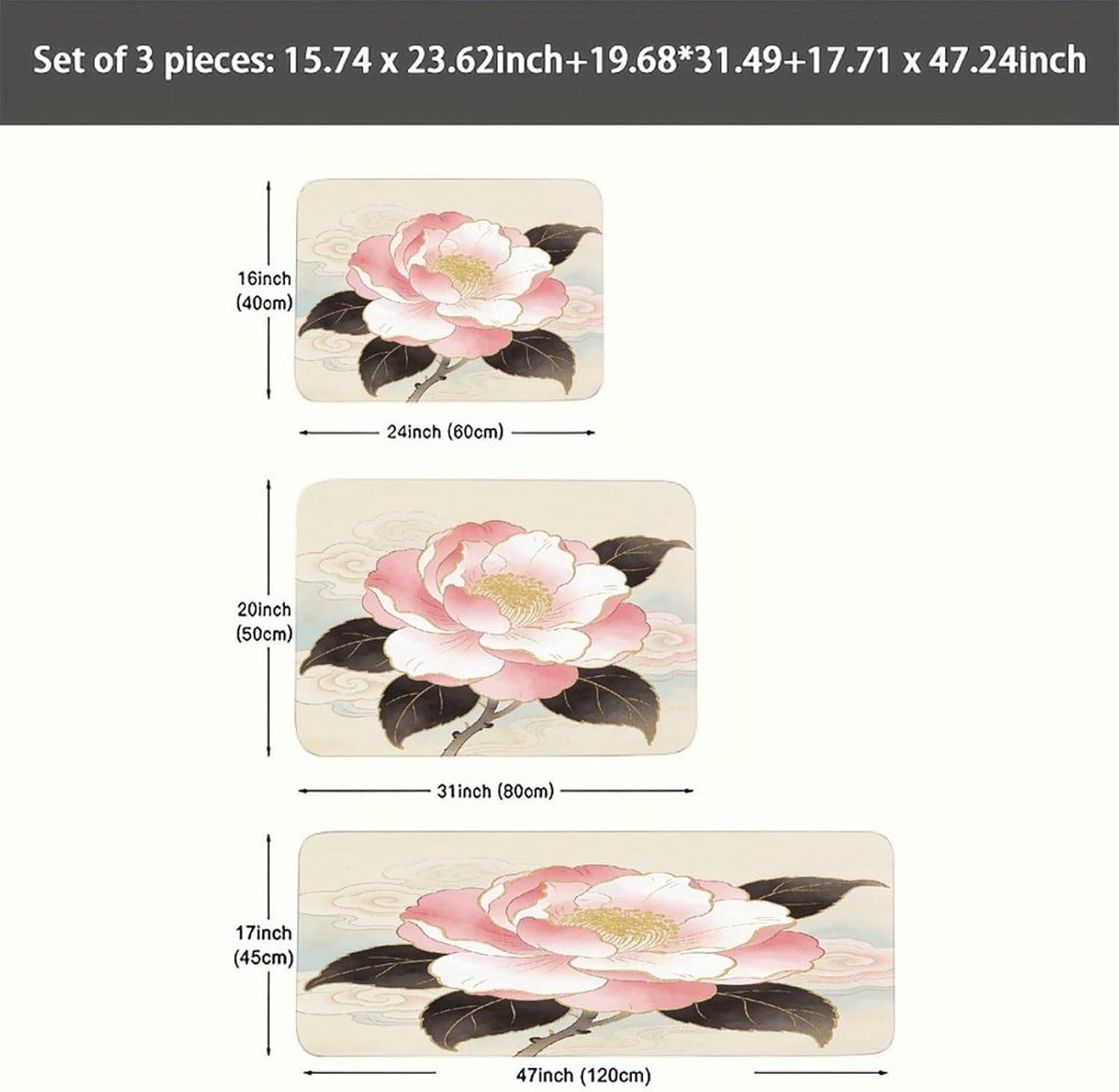 Transform your living spaces with this essential Camellia three-piece set of mats,designed to merge everyday function with effortless style.These washable kitchen mats,crafted from a distinctive Fiber Flannel,introduce a layer of plush softness that welcomes you from the first step.Imagine the comfort of natural,thickened fibers underfoot as you move through your daily routines,whether you're preparing a meal or freshening up.The set's versatile design allows it to adapt beautifully,serving equally well as farmhouse bathroom rugs or soft entryway runner rugs,proving that comfort should have no single address.Beyond their immediate comfort,these mats are conceived for real-life ease and adaptability.As dedicated anti fatigue Camellia kitchen mats for floor areas,they provide a forgiving surface during prolonged tasks.Need a reliable carpet for sink areas to catch drips and spills?This set has you covered.You can freely place them in moisture areas or traffic zones,knowing their performance remains consistent.These are more than mere kitchen utensils;they are subtle yet impactful seasonal home Camellia decor mats.Change the feel of your space by rotating them or moving them from a spring kitchen carpets setup to a cozy autumn nook.Their cohesive look ties different areas together,enhancing the overall beauty and warmth of your interior.Their breathable and gentle texture makes them a reliable companion in any room,offering a consistently pleasant foundation.