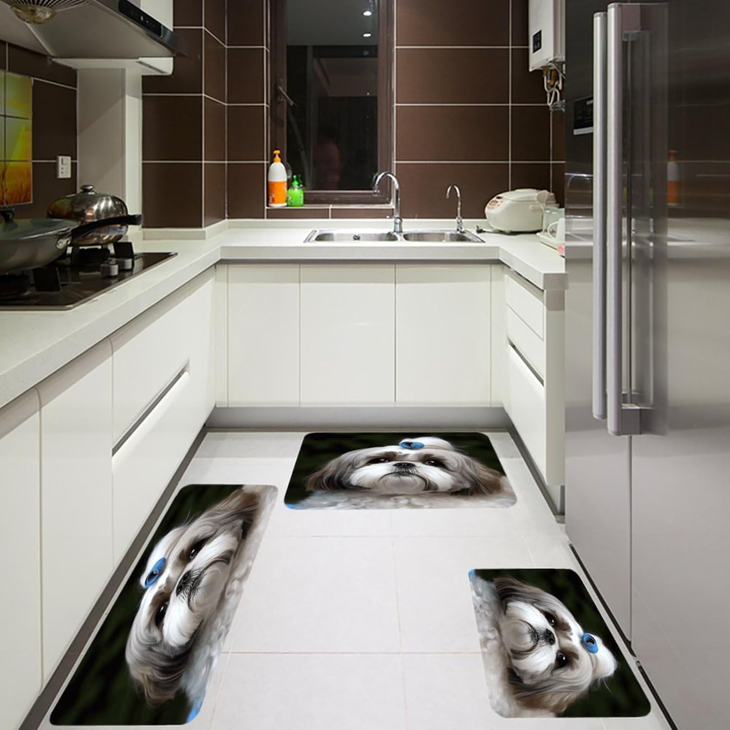 Transform your living spaces with this essential Shih Tzu Dog three-piece set of mats,designed to merge everyday function with effortless style.These washable kitchen mats,crafted from a distinctive Fiber Flannel,introduce a layer of plush softness that welcomes you from the first step.Imagine the comfort of natural,thickened fibers underfoot as you move through your daily routines,whether you're preparing a meal or freshening up.The set's versatile design allows it to adapt beautifully,serving equally well as farmhouse bathroom rugs or soft entryway runner rugs,proving that comfort should have no single address.Beyond their immediate comfort,these mats are conceived for real-life ease and adaptability.As dedicated anti fatigue Shih Tzu Dog kitchen mats for floor areas,they provide a forgiving surface during prolonged tasks.Need a reliable carpet for sink areas to catch drips and spills?This set has you covered.You can freely place them in moisture areas or traffic zones,knowing their performance remains consistent.These are more than mere kitchen utensils;they are subtle yet impactful seasonal home Shih Tzu Dog decor mats.Change the feel of your space by rotating them or moving them from a spring kitchen carpets setup to a cozy autumn nook.Their cohesive look ties different areas together,enhancing the overall beauty and warmth of your interior.Their breathable and gentle texture makes them a reliable companion in any room,offering a consistently pleasant foundation.