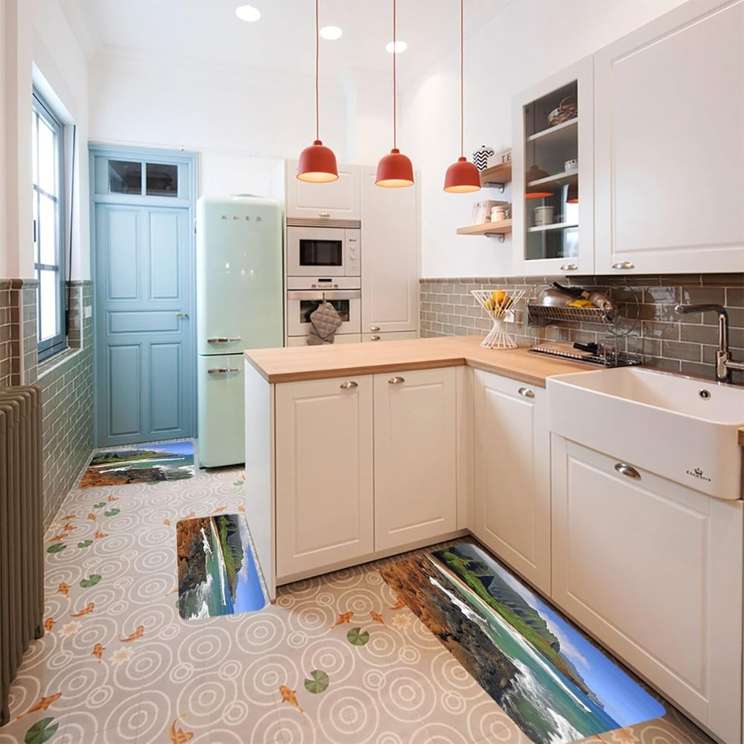 Introduce a new level of ease and visual harmony to your culinary space with this essential three-piece Kauai Hawaii Seashore kitchen mat set.Designed specifically for use areas,these cushioned kitchen rugs provide a welcome layer of support right where you need it most–in front of the sink,stove,or prep counter.the fabric offers a plush,dense texture underfoot,making standing tasks noticeably more comfortable.The set functions perfectly as versatile kitchen area rug solutions,fitting seamlessly into your existing layout.The core of these anti fatigue Kauai Hawaii Seashore kitchen rug sets lies in the selected velvet material.This fabric choice delivers both the sought-after softness and a practical thickness that gently cushions your feet,helping to alleviate the tiredness that comes with long cooking sessions.Beyond comfort,maintenance is refreshingly simple;they are washable kitchen mats designed to maintain their appearance through regular cleaning.Extend the utility and aesthetic charm beyond just the kitchen.The soft Kauai Hawaii Seashore kitchen runner rugs design and quality construction make them adaptable companions for other areas like the bathroom vanity or even outdoor patio setups where a comfortable floor mat is desired.Arrange the three pieces to create a cohesive runner effect or use them individually as targeted floor mats where support is needed.This set effectively combines practical comfort,effortless care with its washable nature,and an attractive upgrade to your floor space,making it a smart addition to any home.