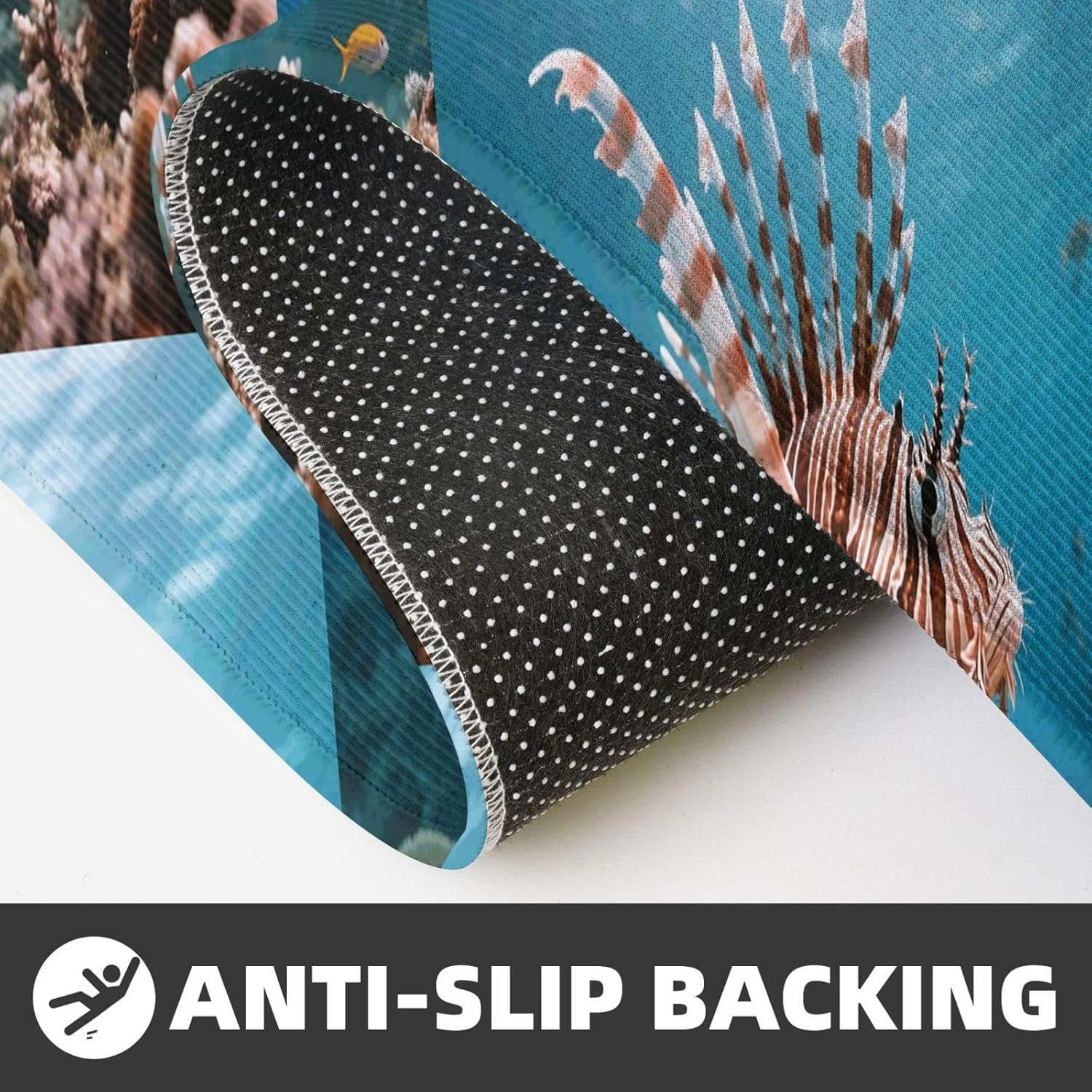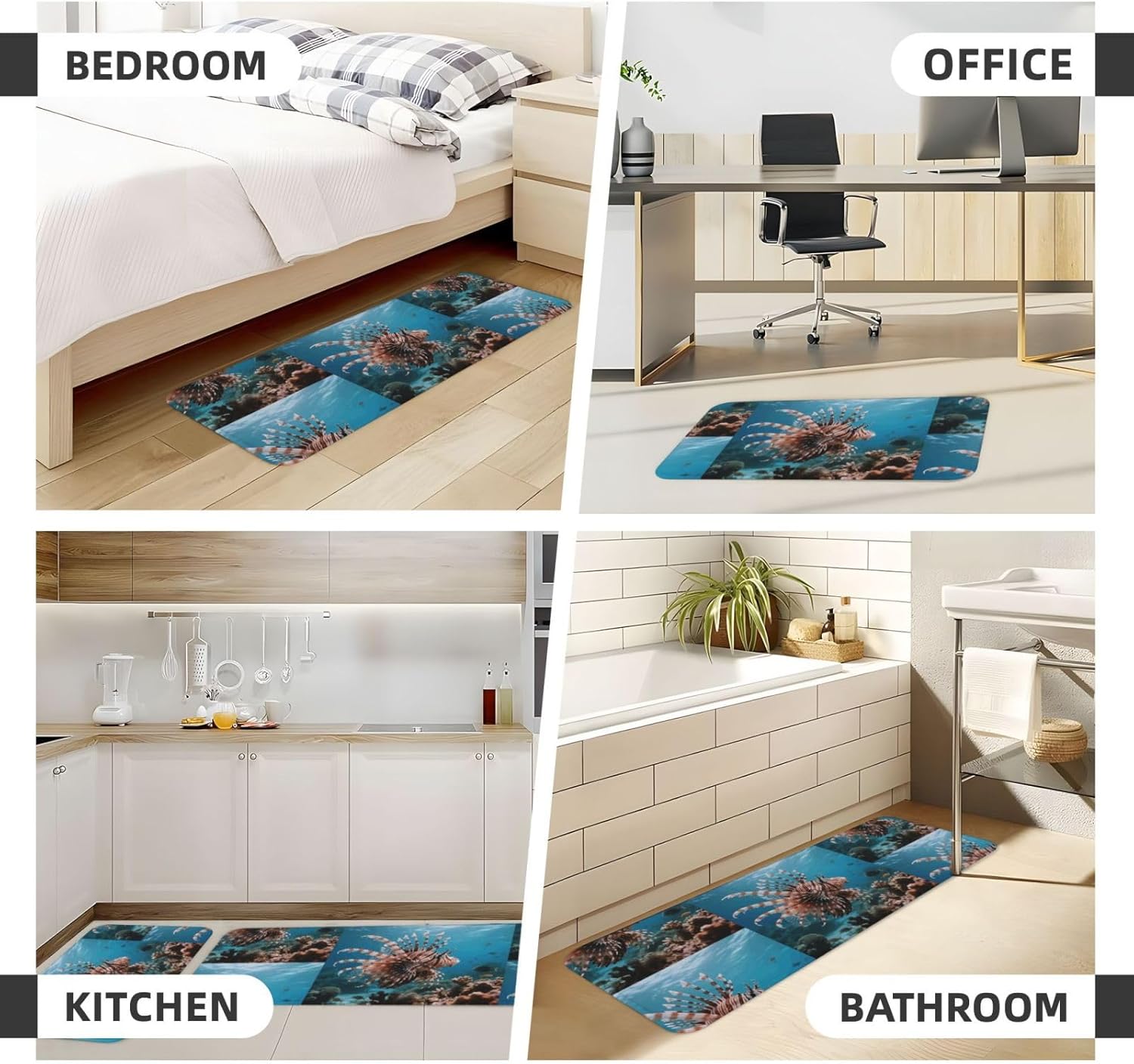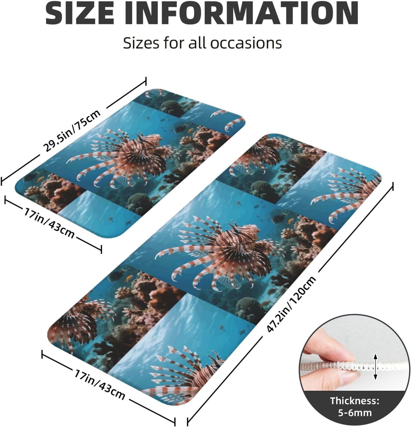 Kitchen Rugs and Mats, Anti Fatigue Comfort Standing Kitchen Runner Mat Lionfish Kitchen Floor Mat 2 Sets Boho Kitchen Rug for Kitchen Decor Floor Mat Runner Carpet for Hallways Farmhouse Kitchen Mat, Cushioned Anti Fatigue Kitchen Mats for Floor, Non Slip Rugs for Kitchen Floor, Lionfish Kitchen Mat Anti Fatigue Cushioned, Memory Foam Padded Standing Rug Washable, Non Slip Comfort Floor Runner for Home, Sink, Laundry, Office Cushioned Kitchen Mats for FloorSize: The set contains 2 rectangular mats (17.3"*29.5"+17.3"*47.2").Durable and non-slip: It's made of PVC material, the grain backing prevent slipping or shifting.Decent design: The simplicity pattern and color make your kitchen more stylish.Multi-purpose: Suitable for laundry, doorway, outdoor, kitchen, foyer, bathroom, etc.Easy to clean: Waterproof material make this anti fatigue mat easy to clean, just wipe it with wet cloth.Stylist Multi-functional Floral Anti Fatigue Kitchen Mats Set: These 2-piece farmhouse kitchen rug set includes a kitchen runner + rectangle kitchen carpet, fitting most kitchen spaces, also suitable as standing desk mat, laundry room rug and runner,office mat,doormat, bedroom rug ,bathroom rug mat, bedroom accent or other anti fatigue mat application, provides a warm accent for the home or kitchen.Also be great gift idea for Thanksgiving,Christmas or any other holiday!