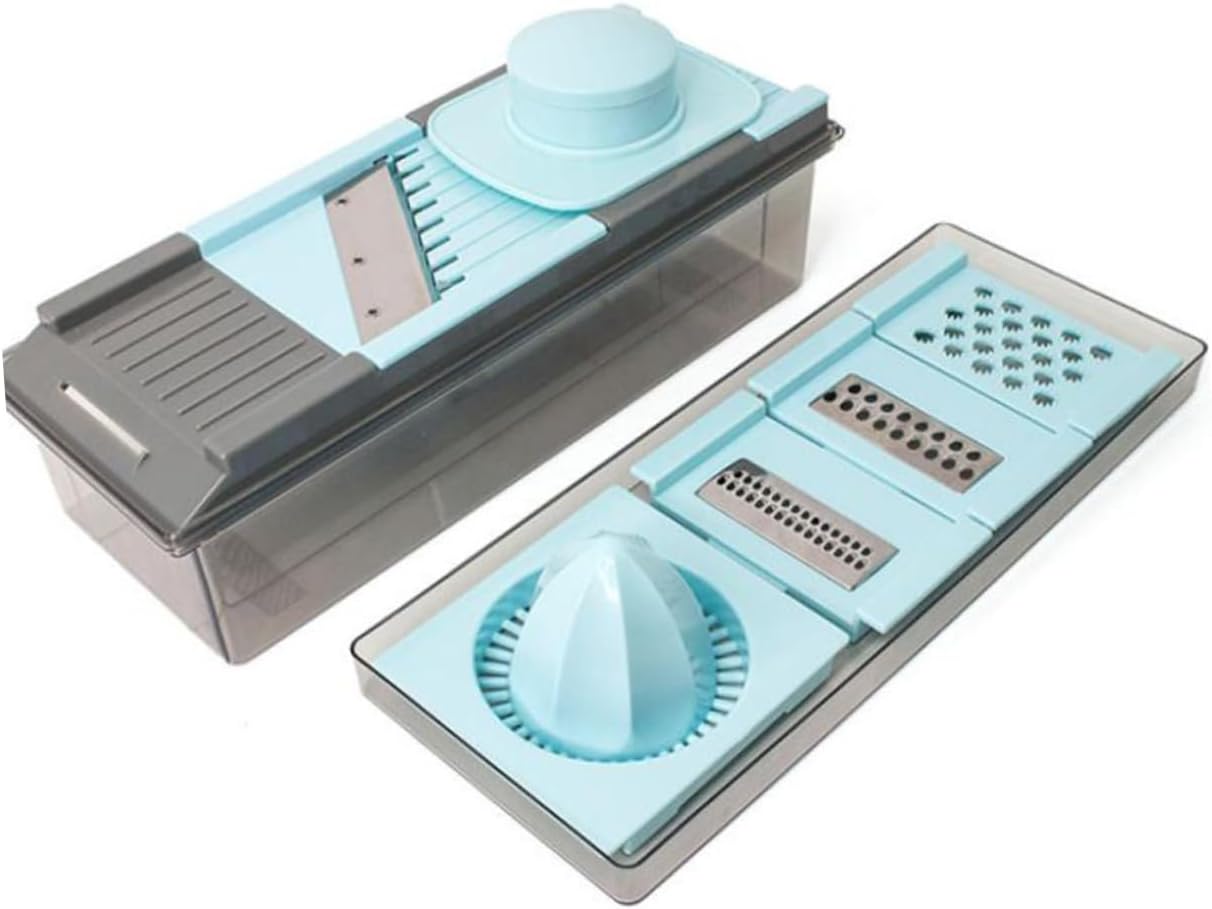 Package List 1 x vegetable grater Characteristics - Color: Sky blue vegetable slicers. - Size: About 30 x 11.5 x 8.5cm/11.811024x4.527559x3.346457 inches juicer squeezer. - Material: ABS, Stainless steel fruit slicers. - for grating or slicing ginger, garlic, carrot, etc. Can be used as a juicer squeezer, too slicers for vegetables. - Made of material for lasting use vegetable grater. - Makes dishes look better and at the same time save time slicers. - Small enough to store in your drawer. - Comfortable to hold, makes cutting or slicing efficient and effortless. - Also suits for , cucumbers, squash and more.Goods Informationvegetable slicers Can be used as a juicer squeezer, too.juicer squeezer Quick and effortless to cut food prep time in half, very easy to use.vegetable grater This hand-held slicer offers all the functionality of multiple appliances.slicers for vegetables These blades can cut through all kinds of veggies, grating cheese, slicing potato and cutting fruits