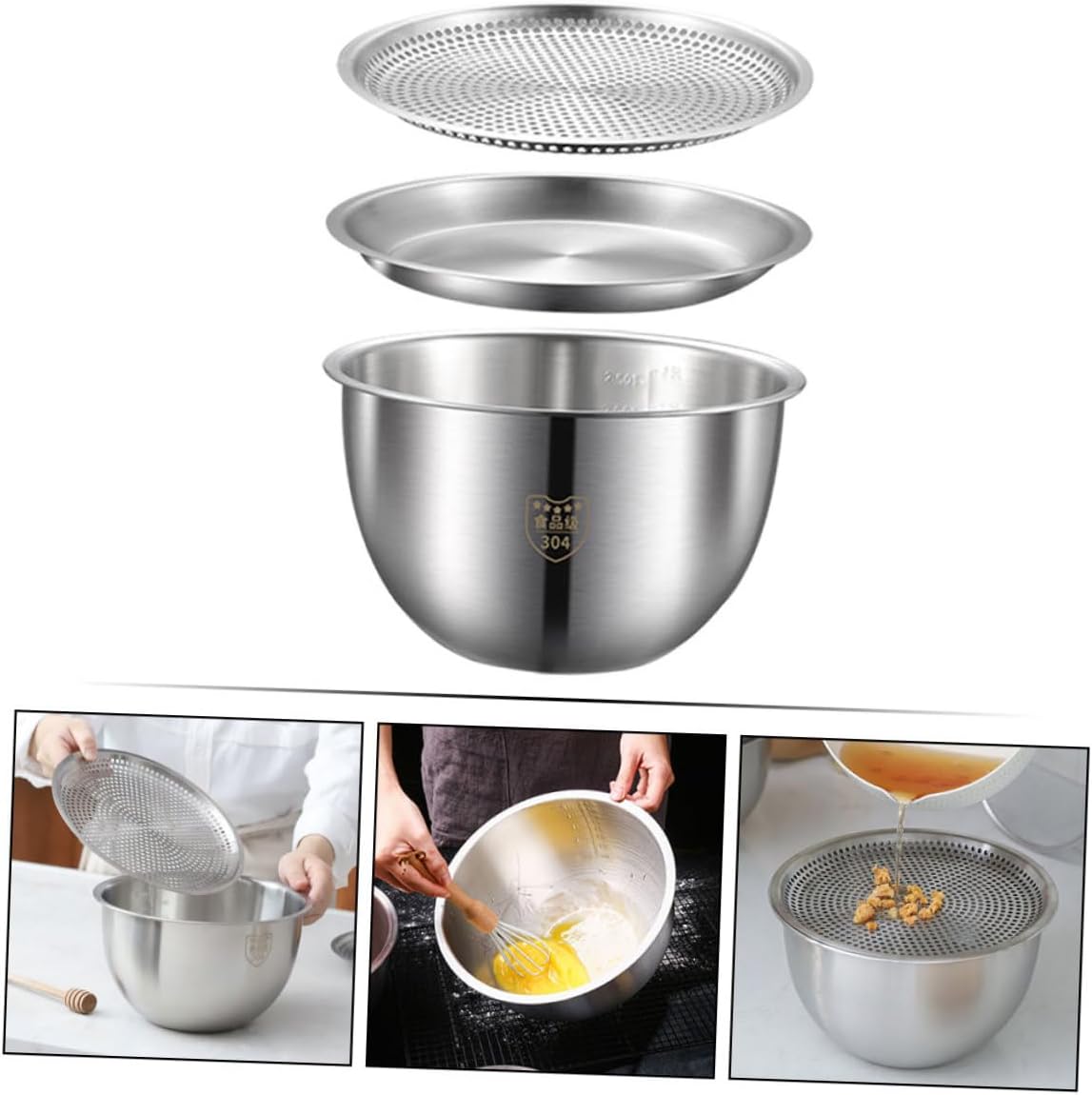 Package Include 1 x bowl 1 x lid 1 x mesh lid Features -Color:Silver drainer fruits washing basin -Size:21.80X21.80X13.00cm/8.57X8.57X5.11in strainer bowl -Product Info:Drain basin set -Material:Stainless steel rice washing utensil vegetable washing basin -The stainless steel material used in the construction of these bowls durability and easy cleaning, making them a addition to your kitchen stainless steel colander bowl. -The practical washing basin with colander kit can be used for draining, filtering oil, washing rice, making salads, cooking, and beating eggs fruit and vegetable washing bowl. -The fine craftsmanship of these bowls a smooth and safe user experience, making them a reliable and practical choice for any home cook vegetable washing bowl. -The reasonable design of this washing basin allows for easy storage and saves space in your kitchen cabinets or drawers stainless steel rice strainer. -You can select the perfect bowl for each task, whether you need a small bowl for beating eggs or a larger one for making salads stainless steel basin.Goods Descriptionfruit vegetable washing basin The multi-purpose vegetable washing basket is made of stainless steel, can be stacked storage.grains washer It doesn't take up space.stainless steel basin The basket can be used for storing and washing fruits and vegetable with good water filtering effect