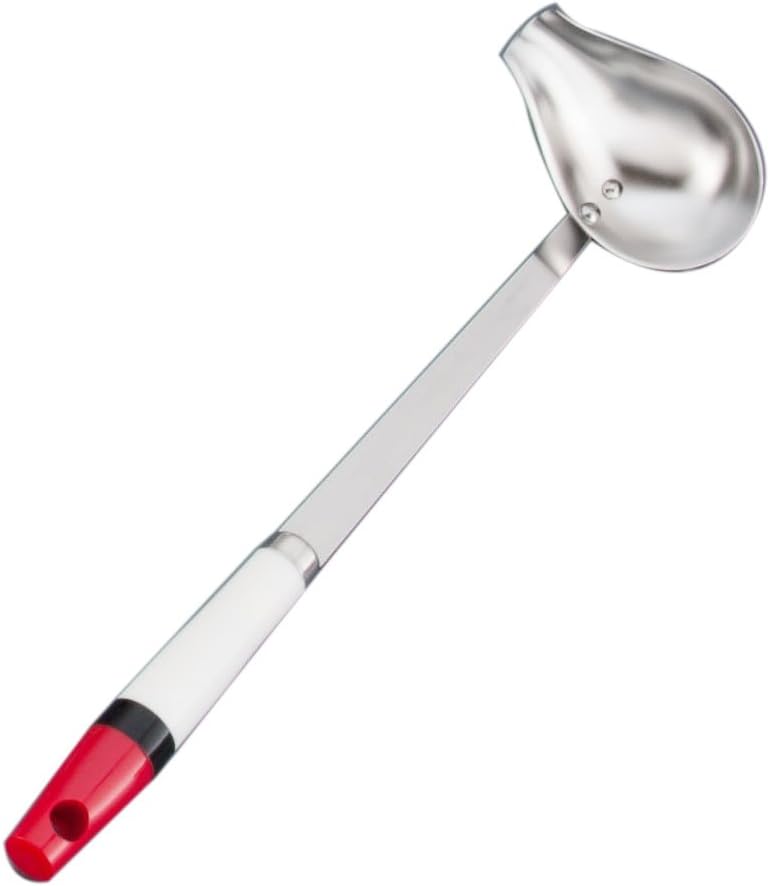 It is easy to scoop and easy to use like a ladle at the side opening. Great for pouring sauces and liquids