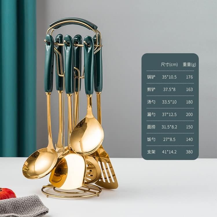 Ceramic Handle Cooking Spatula Seven-Piece Set of Household Soup Spoon Colander Pot Spatula (Color : A, Size : 7pcs)