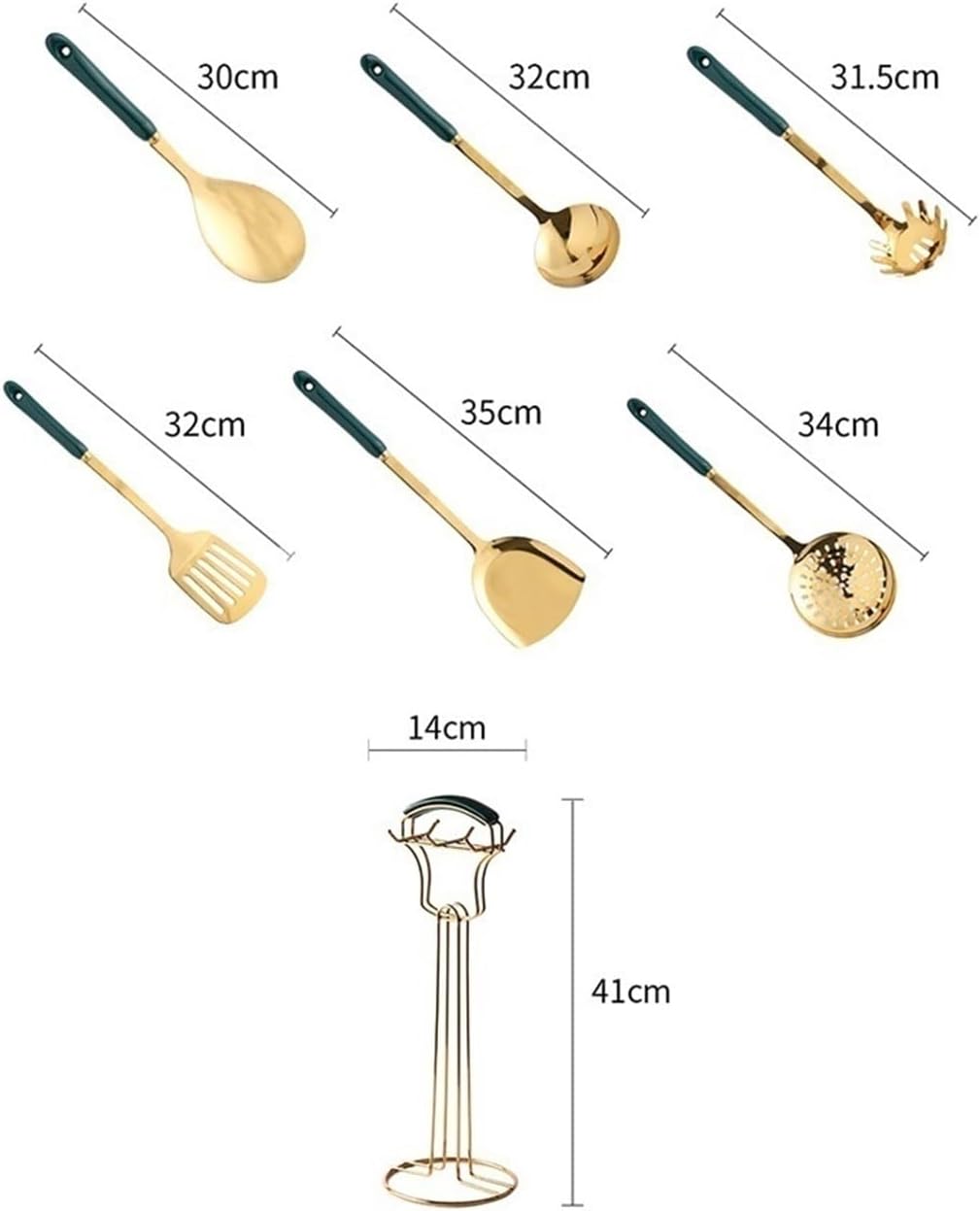 Product Name: 304 Stainless Steel Spoons for Cooking Spatulas Cooking Utensils Cookware Dining Gadgets Sets 7 Pieces Exquisite Cooking Utensils, let your life have a style, and can be a gift from-friends and relatives. Material: 304 Stainless Steel, Ceramic. Cooking Utensils Size: Spoons 32*9.5cm, 30*8cm. Slotted Spoons 34*11.5cm, 31.5*8cm. Cooking Spatulas 35*10cm. Slotted Spatulas 32*7.5cm. Storage Shelf 41*14cm. Package: Spoons * 2 Slotted Spoons * 2 Cooking Spatulas * 1 Slotted Spatulas * 1 Storage Shelf * 1 If you have any questions about the product, please contact us.