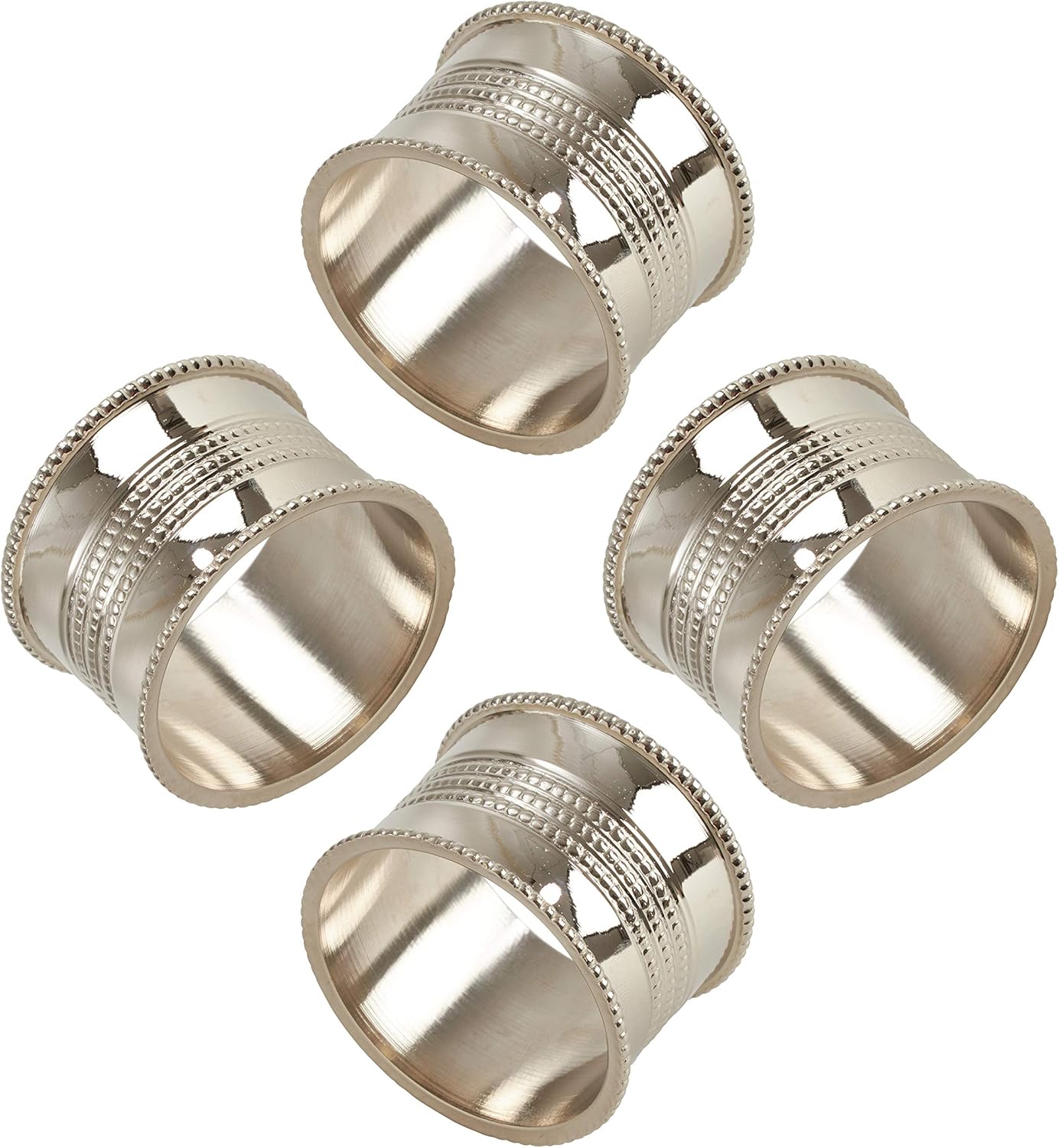 This charming set of dotted napkin rings brings a lovely combination of elegancy and vintage style. They can easily be dressed up for fancy dinner parties, or paired with patterns and colors for more casual gatherings. The silver finish gives them a nice, polished look.