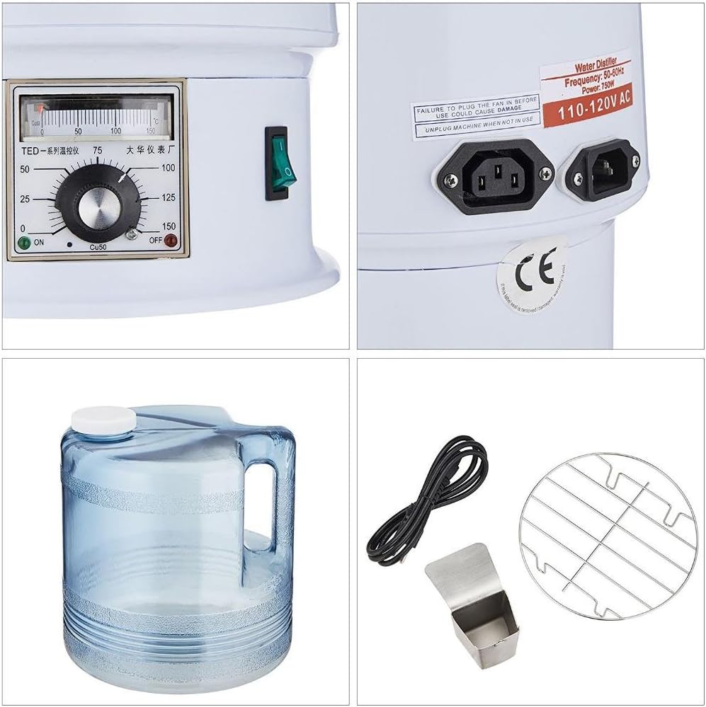 Thanks for Shopping in our Amazon Store, we are a professional business company, we have engaged in online business for about 8 years, we always providing the best products and the best service ; Specifications: Material: Distiller: 304 stainless steel interior, aluminum fan blade, and plastic exterior Bottle: Poly-carbonate Rated voltage: 220V(EU), 110V(US)(it depends on your shipping address,or please advise your voltage) Rated frequency: 50HZ(EU), 60HZ(US) Power rating: 750W Volume: 4L Degree of evaporation:1L/H Over-temperature safe: cut off at temperature of 160°C. Features: --Easy to operate, no installation required --Produces water of the safest and cleanest condition --Seamless round shaped exterior --Durable, yet lightweight and compact enough to travel with --Effectively removes most tap water impurities